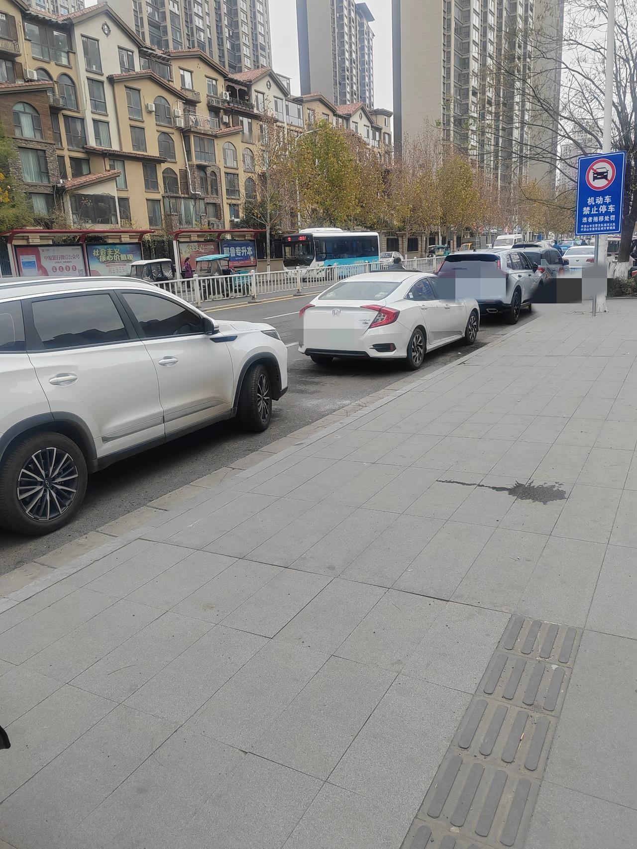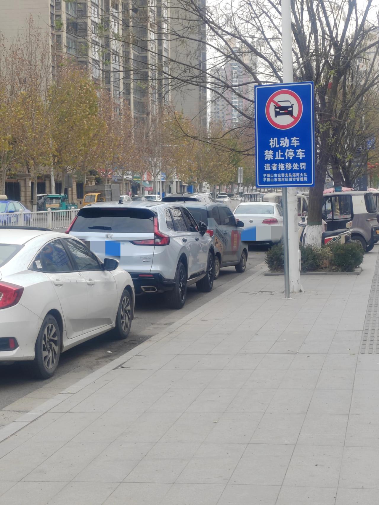 啥也别说了,看图吧! 这是今天下午2点多,在和顺路中骏世界城这块儿顺手拍的照片。 前几天看媒体上说是中骏世界城前和顺路两侧的停车位取消了,并在路中间装上了隔离护栏。下午到这一看,还真的是这样。但原本取消了的机动车停车位上,仍然停放着许多的机动车辆,更让人感到好笑的如下图那样的场景,该路段几处都是这样。 吓唬谁呢?