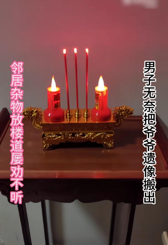 男子挂出爷爷遗照,回击邻居在楼道里乱放杂物,这一波操作堪称魔法打败魔法。简单粗暴但有效果,学习到了 最近,湖南一男子的硬核维权火了。 事件起因是男子的邻居把鞋架以及乱七八糟的杂物放楼道里,男子觉得鞋子臭,也不美观,多次联系邻居以及物业,进行沟通,希望对方撤销鞋柜。 但邻居却认为又没放你家门口,所以拒绝整改。 有时候遇到这种硬钉子确实很难处理,但这名男子却选择用魔法打败魔法,既然你放东西,那我也放。于是他在楼道里挂上爷爷遗照,甚至还买了供桌,供桌可以给爷爷上香,反正这个也没有摆你家门口,也是摆楼间,大家都摆东西,谁怕谁? 这一波操作把邻居给整不会了,好家伙,咱们之间闹点小矛盾,怎么还把爷爷给搬出来了?这大晚上的,有点吓人啊。不得不说,爷爷出面调解效果非常好,后面邻居立马撤掉了鞋架,也祈求男子也将爷爷的遗照给撤掉, 事情也就算是完美的解决了。这件事情说明了邻里之间的矛盾,谁讲道理谁就吃亏。男子剑走偏锋,用魔法打败魔法,果然起效了。 这不是最搞笑的,最搞笑的是网友问博主,你把你爷爷遗像挂外面,他老人家同意吗?博主回复:我爷爷不至于这点忙不帮我吧,给大家笑喷了。