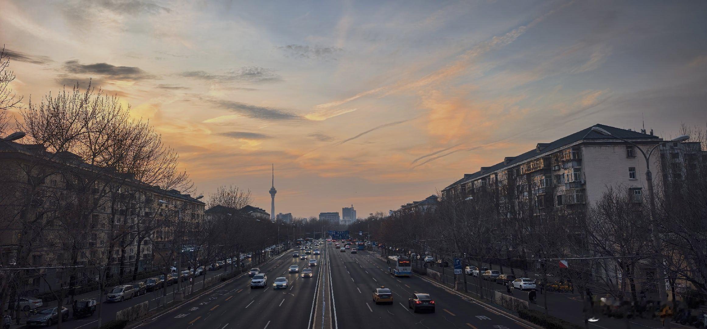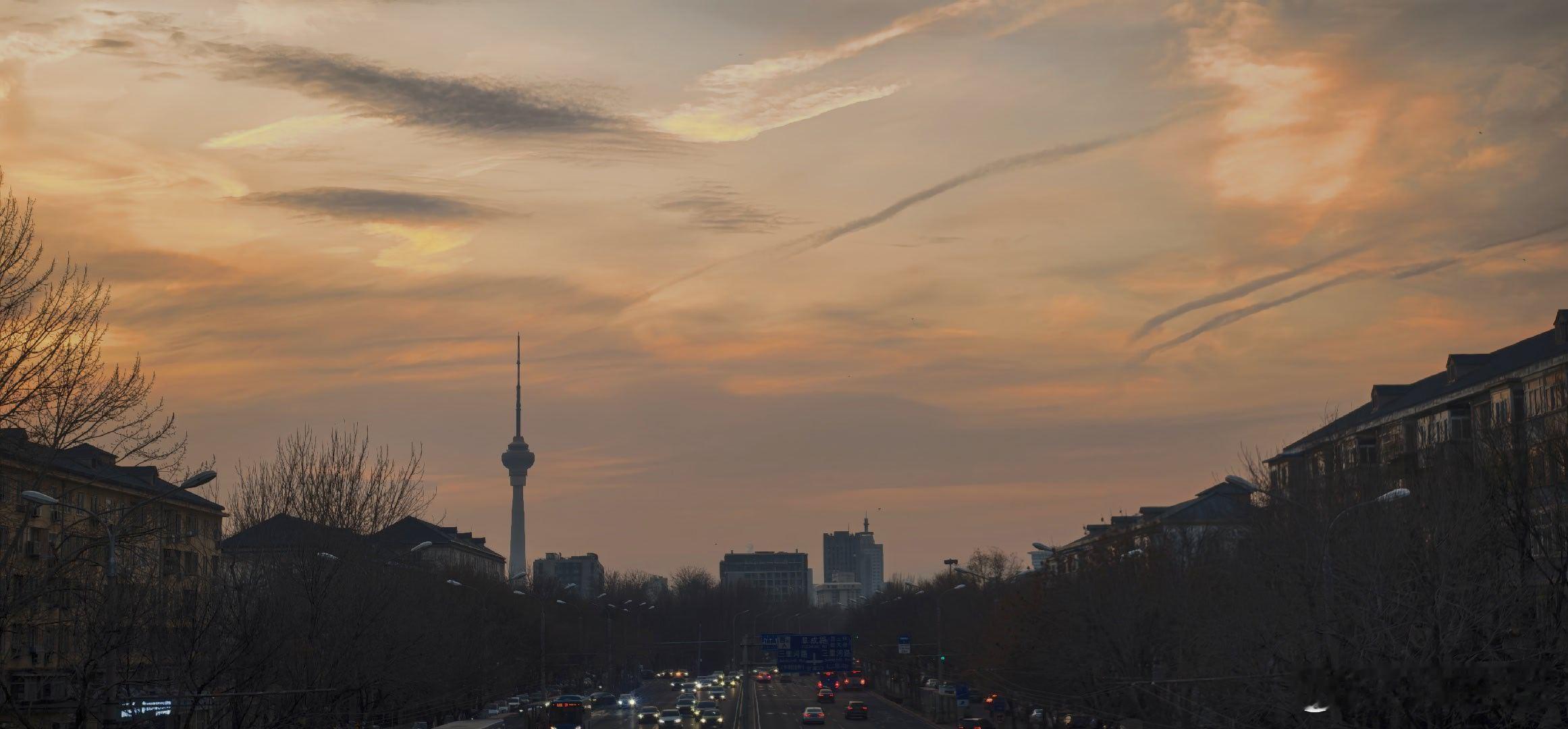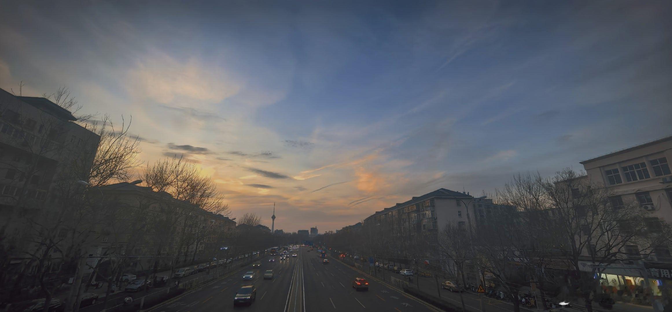 北京冬日周五的傍晚,晚霞不艳,云也不厚,风淡云轻的感觉,偶尔路过的一群高飞的不知