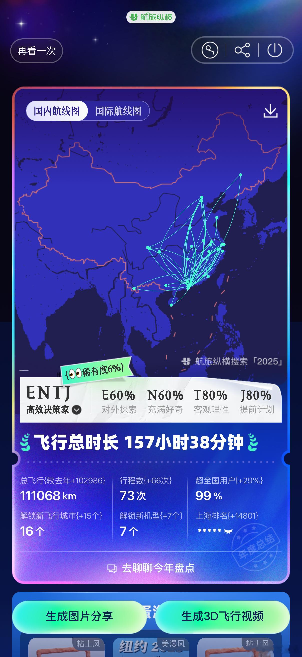 “回血如此迅速,做什么都会成功”看来航旅纵横已经帮我做好年度总结了2025,飞行次数最多、最赶闯的一年虽然我是i人,但职场e人绝对无疑了
