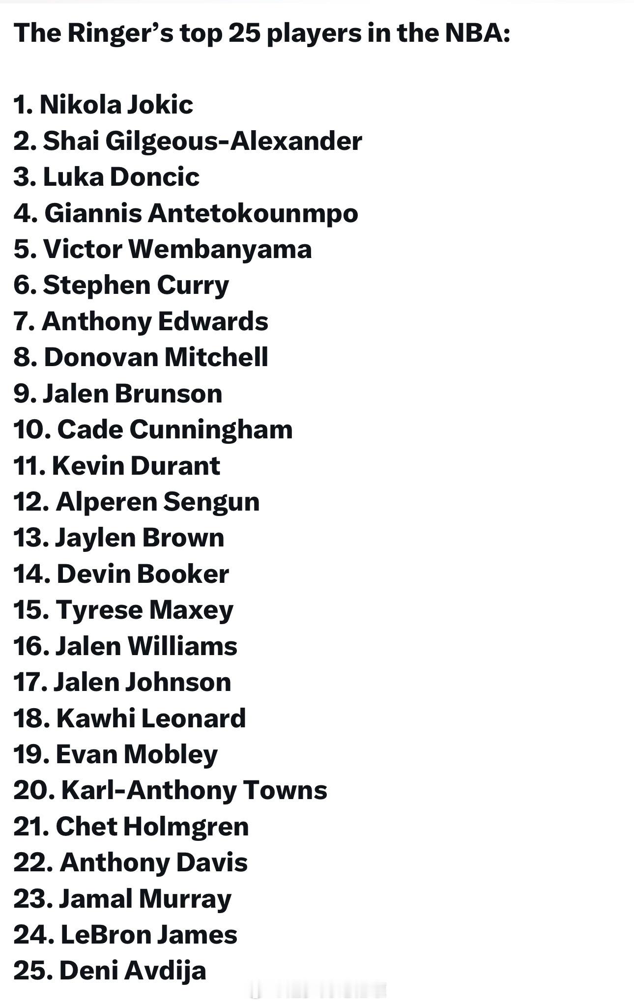 The Ringer本赛季联盟百大球星排名🤨库里第6,杜兰特第11,布朗第13,詹姆斯第24
