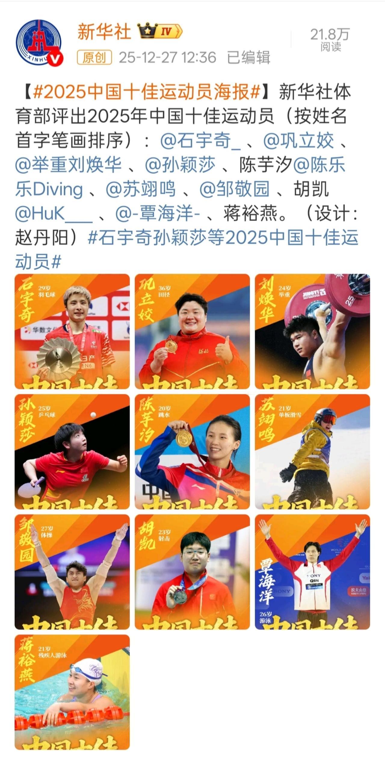 恭喜孙颖莎成为2025年十佳运动员![赞][赞][赞]