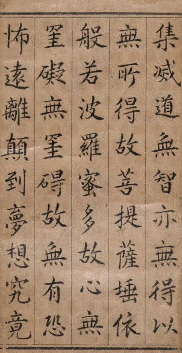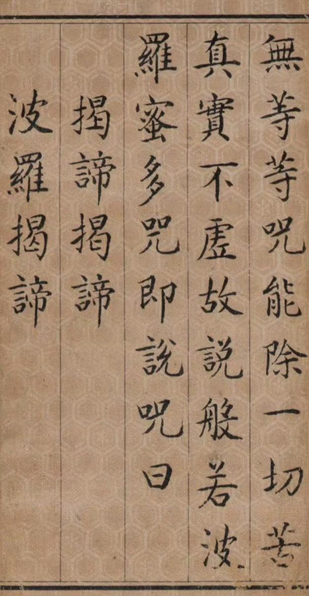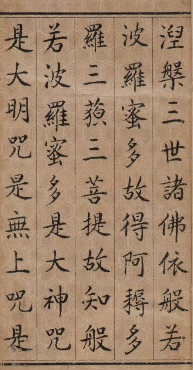 康熙60岁御笔《心经》书于康熙五十二年(1713年)。这一年正值康熙六十大寿,六月二十四日又是武财神关公与佛教中莲花的诞辰日,康熙帝于避暑山庄的涌翠岩沐手书写此经,并书赐明学。 该作品为卷轴水墨龟背笺纸本,规格28×26cm,共计6幅。经文采用唐玄奘译本《般若波罗蜜多心经》,全文260字。书法方面,其受欧阳询小楷结体之影响,布局得当,字形匀称妥帖,骨力舒展,用笔劲挺,同时也有临摹董其昌之痕迹,风格沉稳典雅。此件作品钤有“体元”宝玺,是难得的“宝款俱全”之作,十分珍贵。 静心修心经 毛笔心经 乾隆康熙真迹