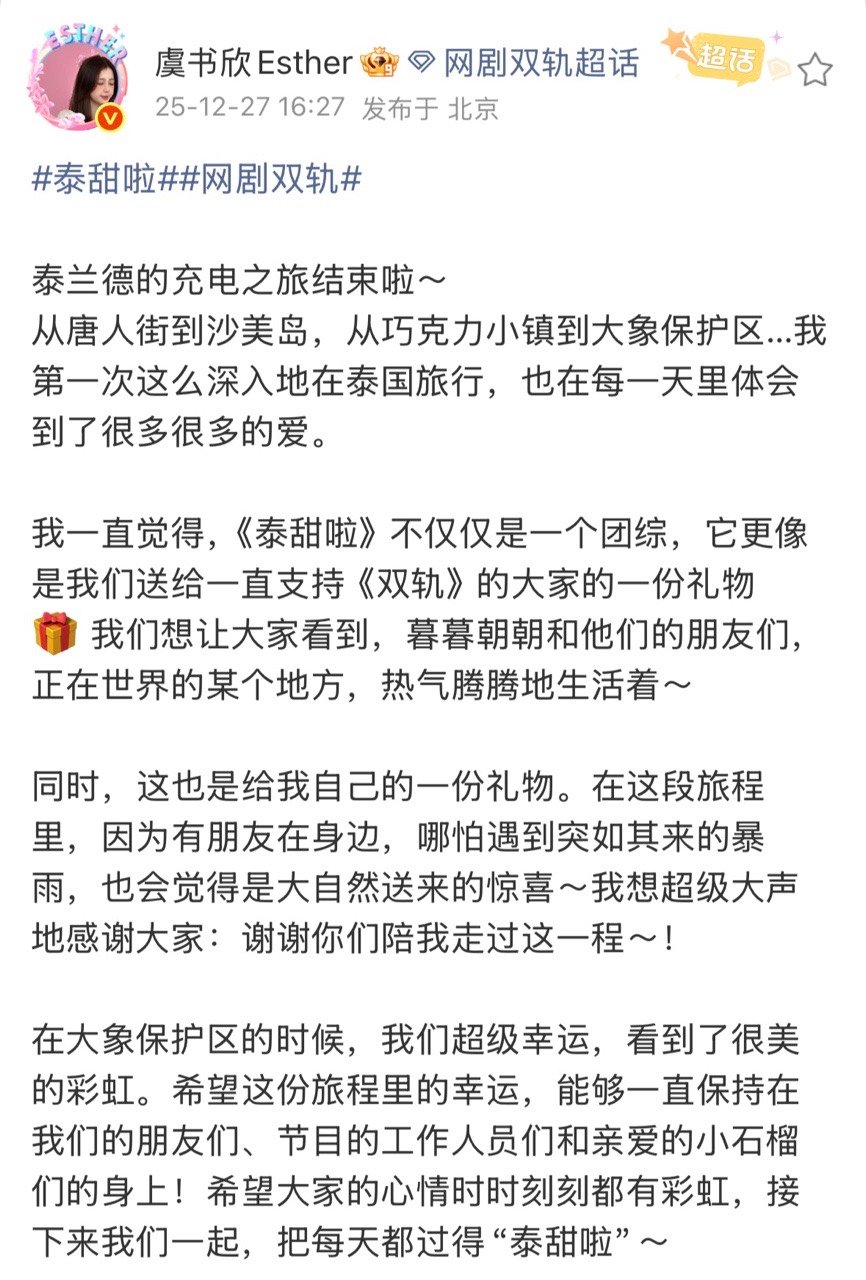 虞书欣说把每天都过得泰甜啦虞书欣泰兰德的充电之旅结束啦 欣欣泰甜啦!