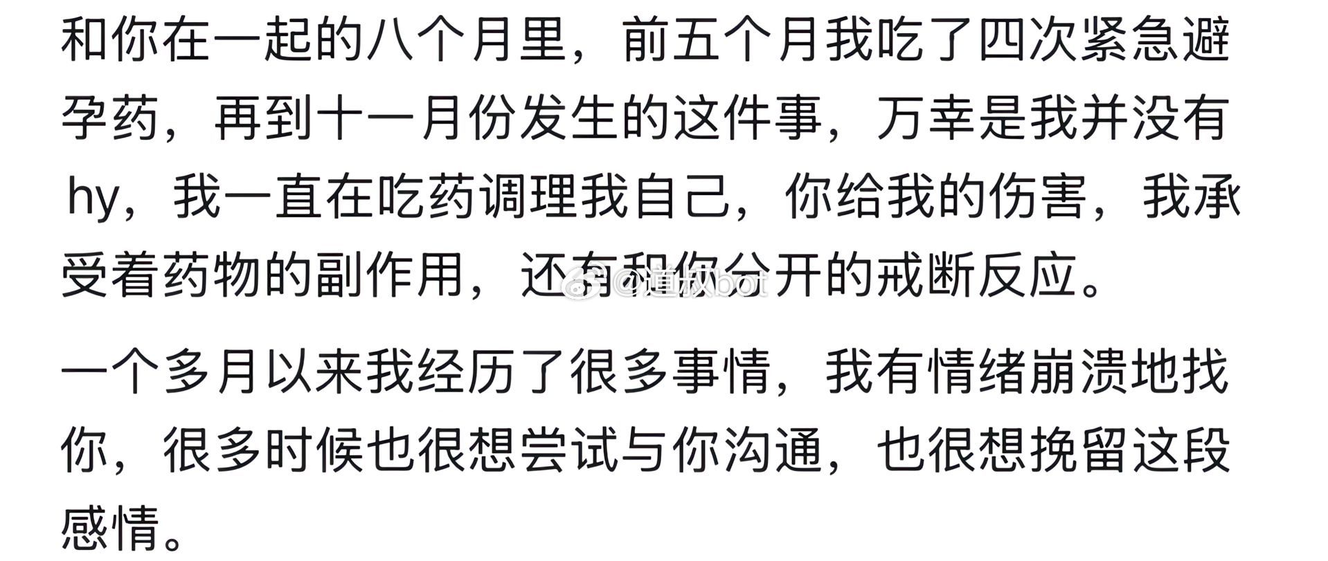 网友爆料,和他在一起的8个月里,为了他吃四次避孕药!