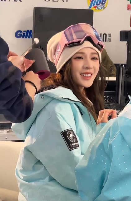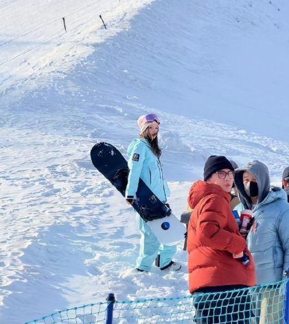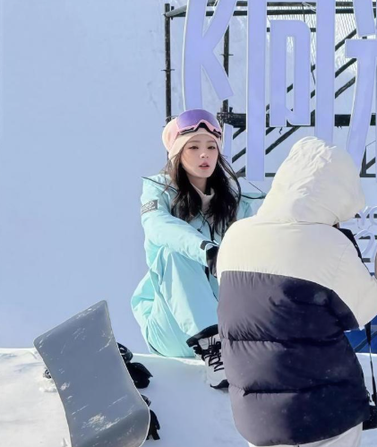 偶遇张予曦在崇礼滑雪!浅蓝高蓬服配奶白针织帽,小头小脸的比例太优越