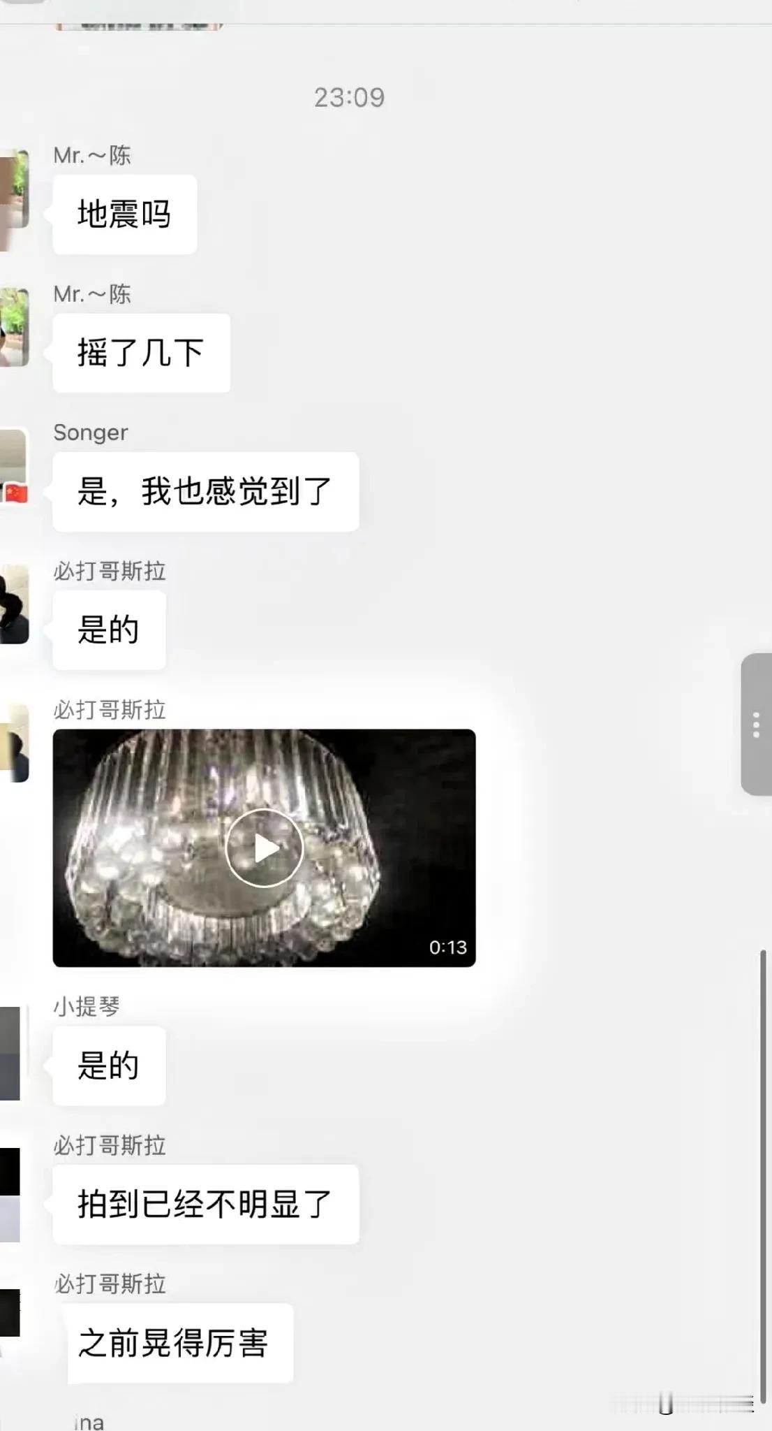 “哪里地震了吗?”吓了一跳,还好,只是震感,还好,不是下半夜,不懂就问,还能在睡前问问,要是三更半夜人家都睡着了,问不到了,还会误以为自己失眠症得癔症了~ 天寒地冻的,大家都缩被窝了吧,应该很多人察觉不到家里有异常晃动,灯关了,更看不到悬在半空中装饰有什么动静了。 有些地方震感明显,群里就热闹起来了… 好奇的人,赶紧打开手机刷刷,看到底是怎么回事。