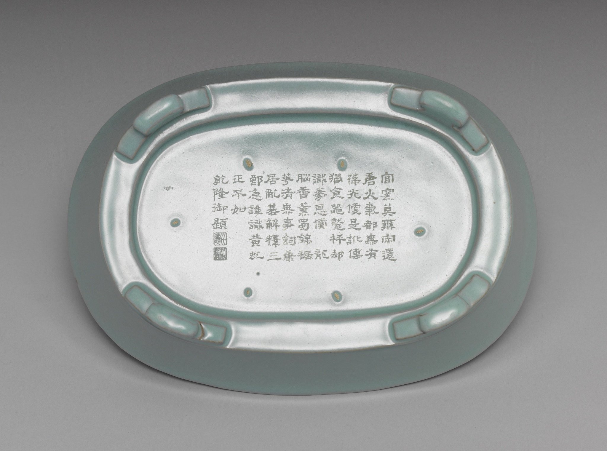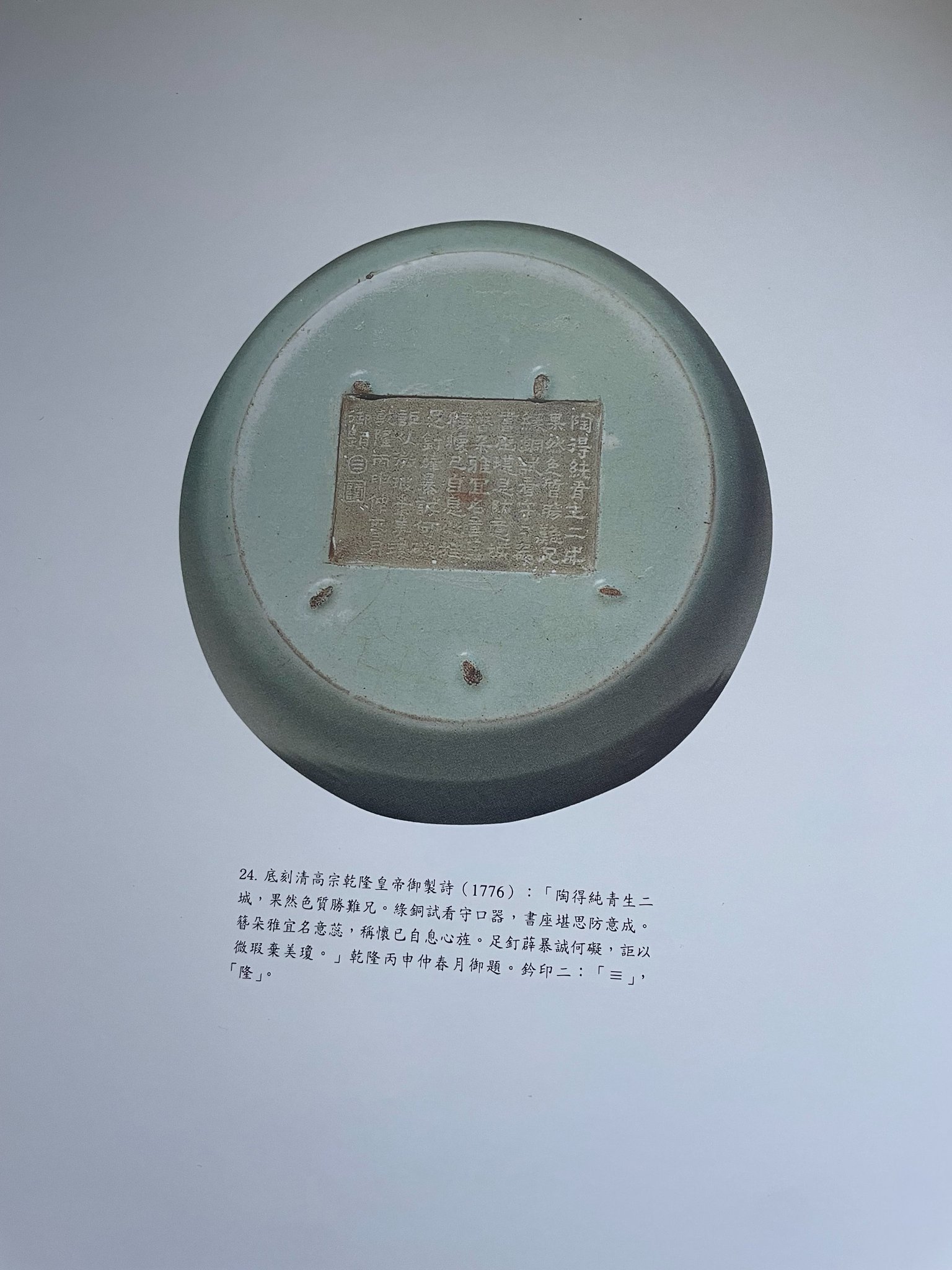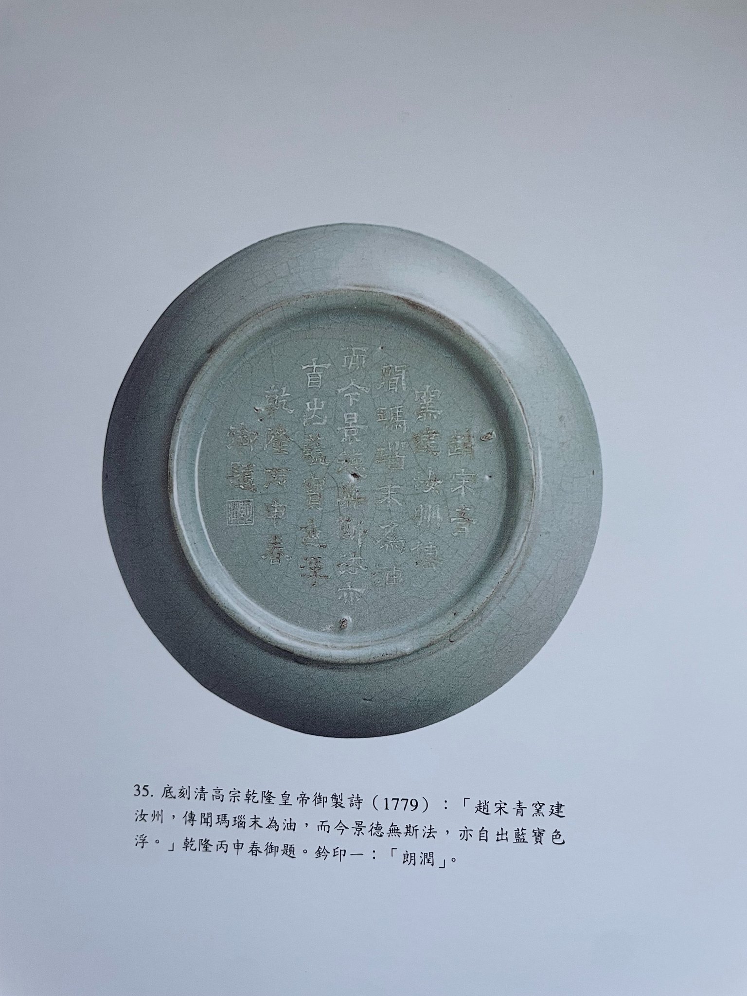 头回知道乾隆帝这个牛皮癣,不光猛盖古代书画,还在传世极其稀少的北宋汝窑瓷器上刻他