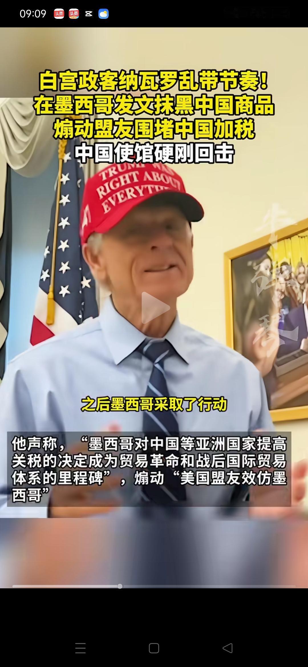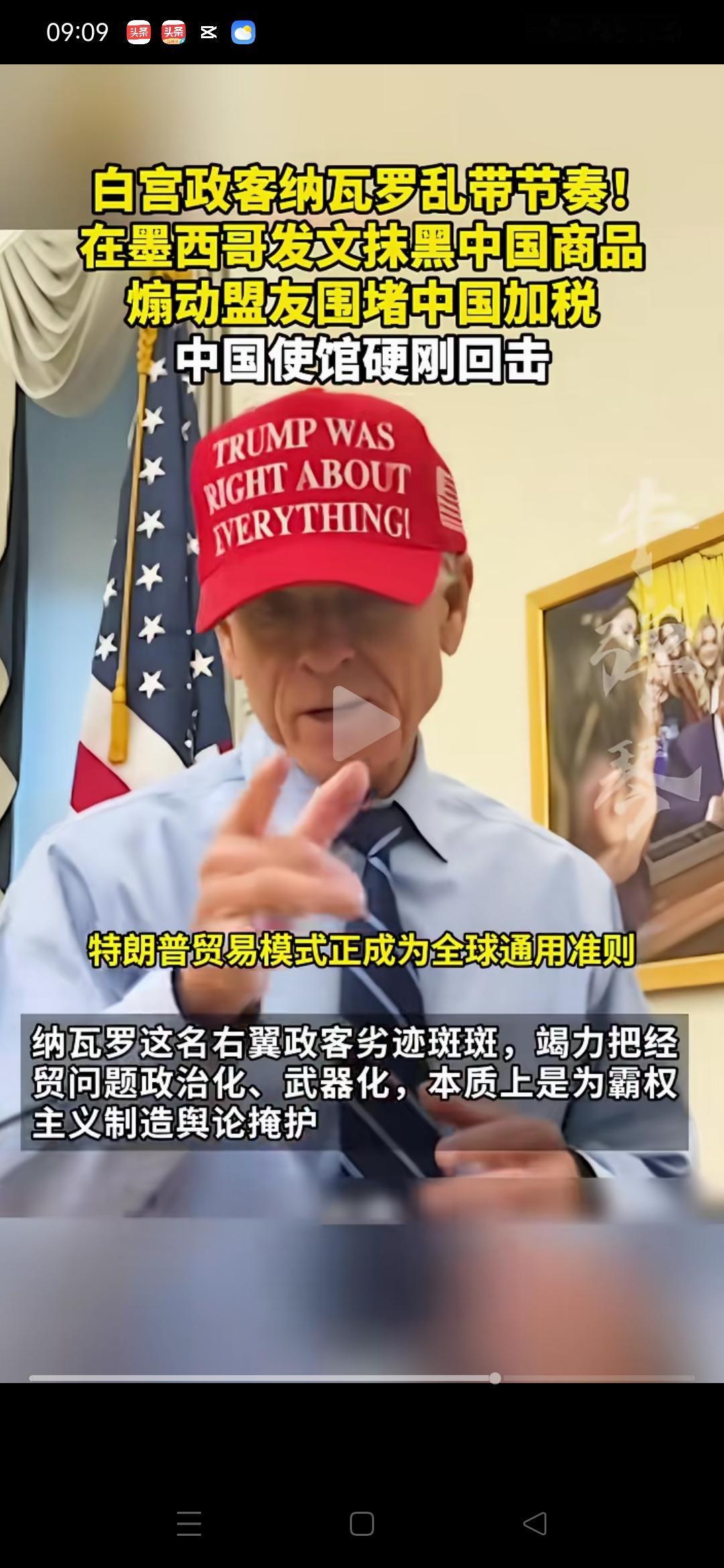 一个从监狱出来的人,还是一个极端反华右翼政客,被特朗普任命为高级顾问,中美关系能好吗? 白宫贸易和制造业高级顾问纳瓦罗,在墨西哥媒体发文大肆抹黑中国出口商品,表扬墨西哥对中国加税的行为,是“贸易革命和战后国际贸易体系的里程碑”,煽动美国盟友去效仿墨西哥的加税做法。 纳瓦罗是对华强硬右翼政客,曾因藐视国会罪入狱,特朗普任命他为高级顾问,这样的人当贸易高级顾问,对中国能好吗?他不就是宣传“中国威胁论”吗?他不就是在拉美搞“贸易壁垒”吗?他不就是想美国独霸天下吗? 如果纳瓦罗继续挑拨墨西哥和中国的关系,而墨西哥死不回头,以后美国再要把墨西哥湾改名为“美利坚湾”,中国可以选择顺其自然! 日本想拥核的意图是什么 中方奉劝纳瓦罗之流认真反思错误 高市早苗对华政策为何如此强硬 高市早苗寻求与金正恩会晤有何意图
