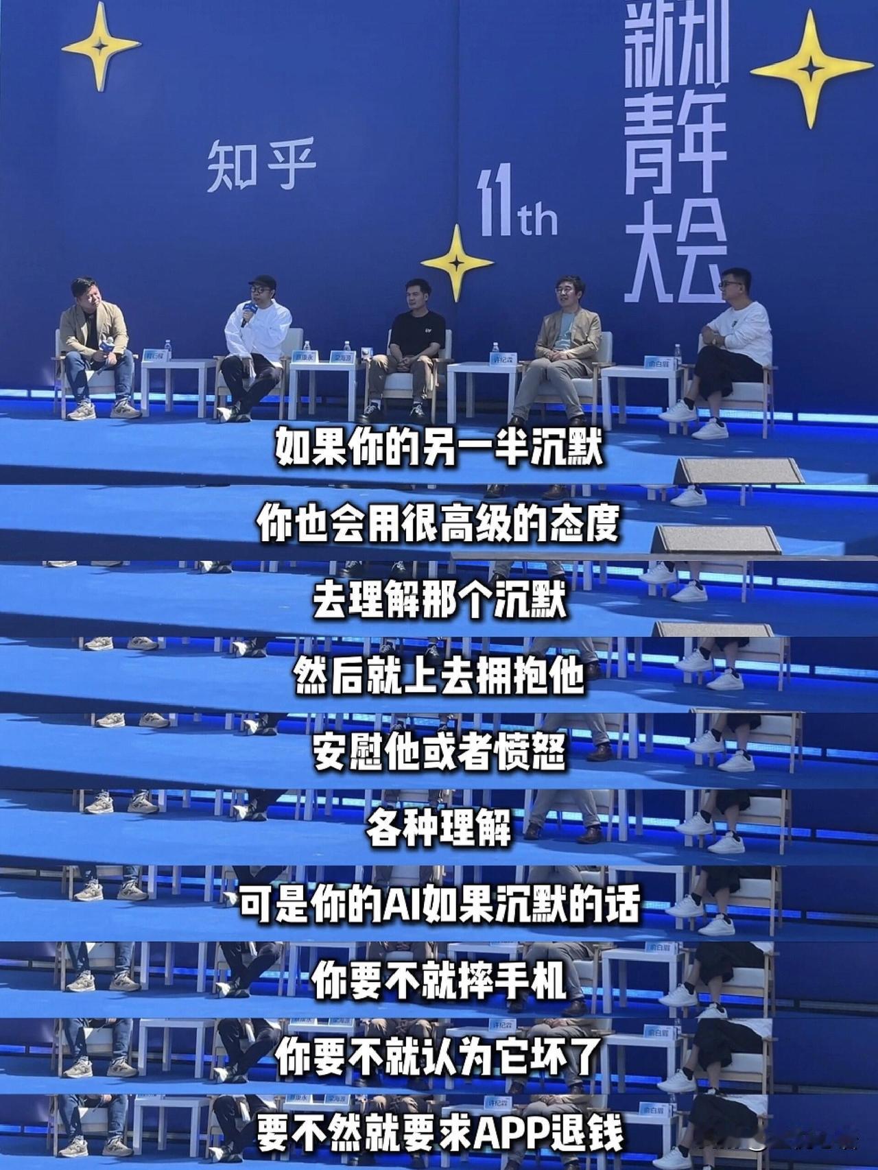 蔡康永说透AI的漏洞! 原来我们赢在“沉默”里 他说AI永远给不了的东西,是沉默。 这话太对了啊家人们! 现在AI啥都会, 写诗比爱好者还溜, 共情像专业心理师。 可你有没有发现, 它的回答永远精准及时,从不会留白。 恋人欲言又止的羞涩, 老友相对无言的默契, 独处时静静沉思的瞬间。 这些藏在沉默里的情绪张力, AI根本懂不了。 它的延迟是故障, 人类的沉默是留白, 是思考的余波, 是灵气的来源。 AI的共情是算法剧本, 再温柔也没有真实温度。 就像鲁迅写的两棵枣树, 那种看似啰嗦的留白, AI永远学不会。 科技再发达, 人类最珍贵的还是那些“不完美”的情感缝隙。 别担心被AI替代, 我们的沉默、缺憾、即兴的灵光, 才是独一份的宝藏啊!