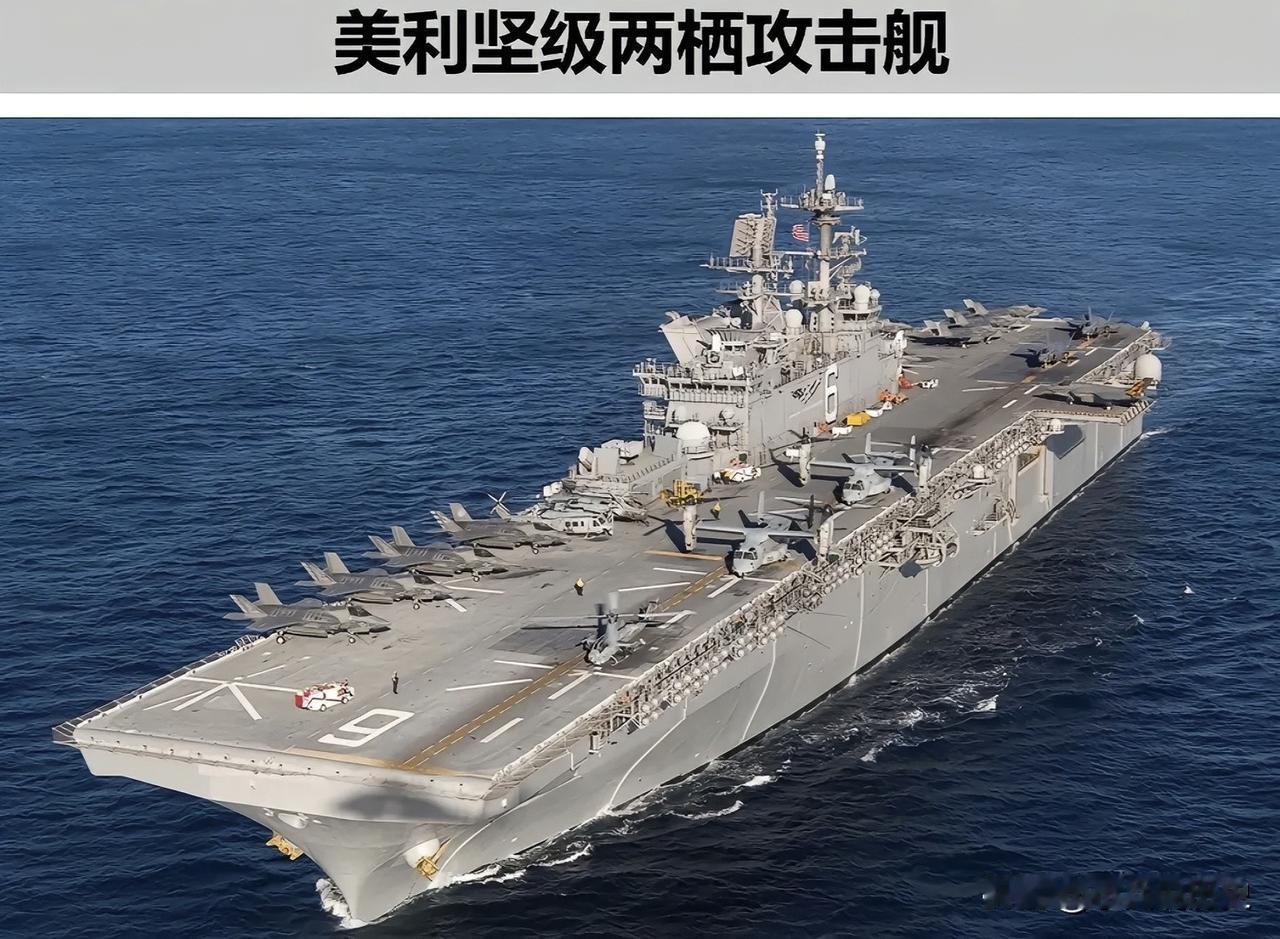 “美利坚”级两栖攻击舰 美国海军在用的“美利坚”级两栖攻击舰,是一艘重达45000吨的大家伙,属于直升机登陆突击舰类型,在两栖登陆打仗的时候,主要负责把空中支援力量送到位。 美国海军打算造11艘这种舰,它原来叫LHA(R)(R就是“替代”的意思)。不过这级舰分两种款式:前两艘,包括第一艘“美利坚”号,叫Flight 0款;从第三艘LHA-8开始,是改进的Flight 1款,这两款的设计想法和船身构造差得挺多。 Flight 0款把机库、弹药库和维修的地方都弄得特别大,专门提升飞机作战的本事,连坞舱都给去掉了;Flight 1款则把舰桥改小,省出地方给机库,还留了个小坞舱,就是想让飞机作战和水面投送的能力都不耽误。 第一艘“美利坚”号,2012年10月20日下水,2014年10月11日开始服役,专门换掉了已经用了35年的塔拉瓦级“贝里琉”号。 基本规格 产地:美国 服役期间:2014年一至今 单艘造价:30亿美元 全长:257米 全宽:32米 乘员:2746名 排水量:45693吨(满载) 动力系统:2台燃气轮机,双轴 最高速度:>37公里/小时 舰种:两栖攻击舰(直升机登陆突击舰) 功率:70000匹马力,另附两具5000匹马力的辅助推进发动机 舰载机:F-35B战斗机、CH-53E超级种马、AH-1Z蝰蛇攻击直升机、 MH-60S骑士鹰直升机、MV-22B鱼鹰倾旋翼机、UH-1Y毒液直升机。 武器系统:2×RIM-116拉姆导弹、2×RIM-162导弹、2×密集阵近防系统、3×Mk38机枪系统、7×双联装.50口径重机。 雷达系统:AN/SPQ-9B海面搜索/火控雷达、AN/SPS-48G三维空中搜索雷达、AN/SPS-49二维空中搜索雷达。