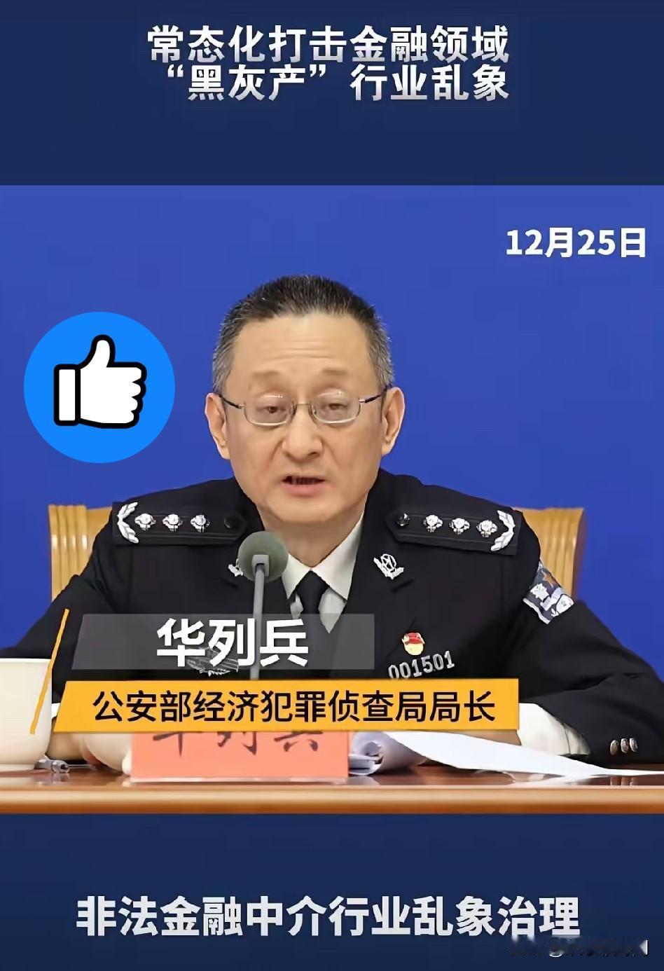等啊!盼啊!老百姓的心声总算被听见了,国家终于动手了,开始打击金融领域的“黑灰产”了。12月25日,公安部经济犯罪侦查局召开新闻发布会,华列兵局长郑重宣布要打击金融领域的“黑灰产。 那些所谓的“高科技”放贷公司也需要整顿治理了,什么度小满、360借条、借呗、花呗、京东白条……,都需要好好治理。 这些平台嘴上喊着“普惠金融”,背地里全是坑人的套路。度小满支付2024年9月刚吃了121万罚单,总经理还被连带罚款,违规项就包括开户审核不严、交易信息不实等。 更恶心的是隐性收费,广州刘女士借5000块用一年,除利息外要付近800元担保费,最后得还6792块,硬生生多掏1792块,综合年化利率飙到35.85%,快触高利贷红线。 黑猫投诉上,“担保费”相关投诉超13万条,每一条都是老百姓的血泪控诉。那些看似不起眼的“服务费”“管理费”,其实都是收割普通人的镰刀。 公安部这次是动真格的,6月到11月专项打击,立案1500余起,打掉200多个犯罪团伙,涉案金额近300亿元。金融监管总局也没闲着,移交线索4500余笔,涉及金额超210亿元。 黑灰产的套路早就超出想象,安徽铜陵警方破获“职业背债人”案,300多人被中介忽悠,用虚假信息协助骗贷,拿几千块好处费,却要背负全额债务,还涉嫌骗取贷款罪,最高可判处七年有期徒刑并处罚金。 浙江蒋某团伙更嚣张,伪造营业执照、房产证,勾结银行内部人员骗贷9000余万元,这是公安部通报的典型案例,把金融规则当成自家谋利工具。银行的坏账最终会摊到房贷、车贷利率里,咱们每个存钱、贷款的普通人,都在替这些骗局买单。 网贷平台的暴力催收更是噩梦,有借款人被催收骚扰村委会、威胁老人孩子,甚至半夜敲门滋扰。2025年2月28日实施的网贷催收国标早已明令禁止这些行为,却成了部分平台的“催债法宝”。 全国法院近五年审结32.44万件涉互联网金融纠纷案件(含网贷类),平均每年超6.4万件,相当于每天有175起相关纠纷立案,足以说明行业乱象有多普遍。 很多人被“日息0.05%”的宣传迷惑,觉得一天才2.5块利息,根本算不清背后藏着的高额服务费,等发现时已经深陷泥潭。 这次“监管+公安”的联动模式太给力,上海、重庆等地创新协作机制,靠跨部门通报和数据整合,实现全链条打击。39份公安经侦建议函,直指制度漏洞,从根上堵口子。 打击不是目的,而是要还金融市场一片清明。那些靠套路赚钱的平台该醒醒了,老百姓的钱不是那么好骗的,国家的监管也绝不会缺位。 各位读者你们怎么看?欢迎在评论区讨论。 网络黑灰产犯罪