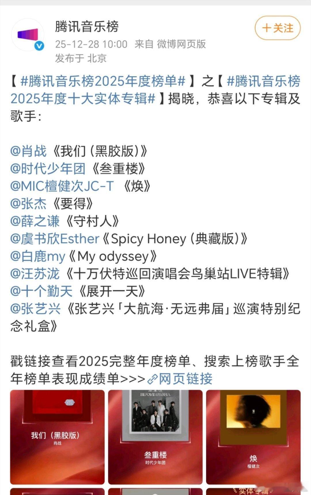 腾讯音乐战报肖战《我们》是2024年出的专辑,2025年依然霸榜第一!