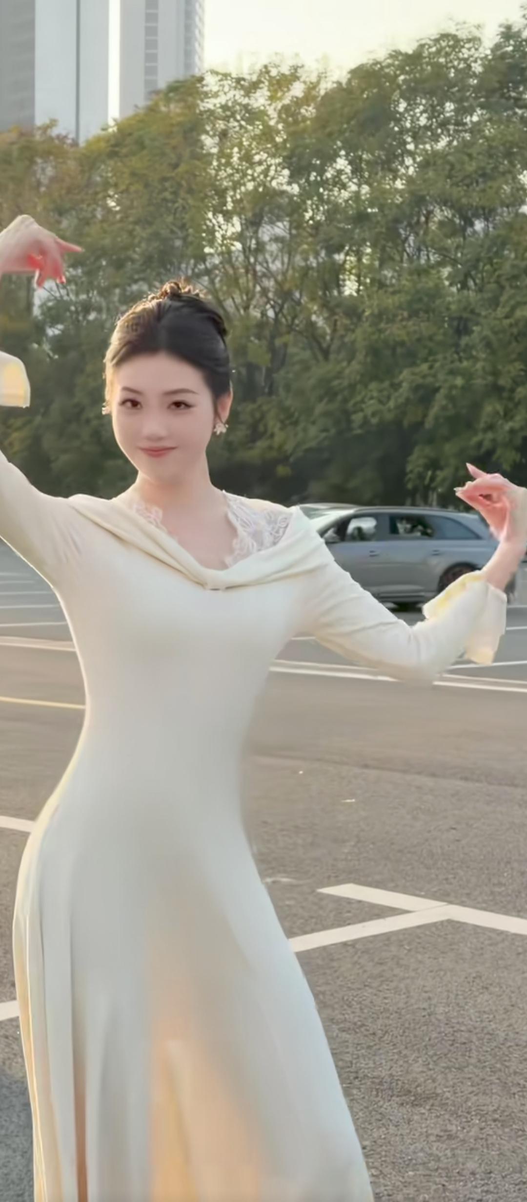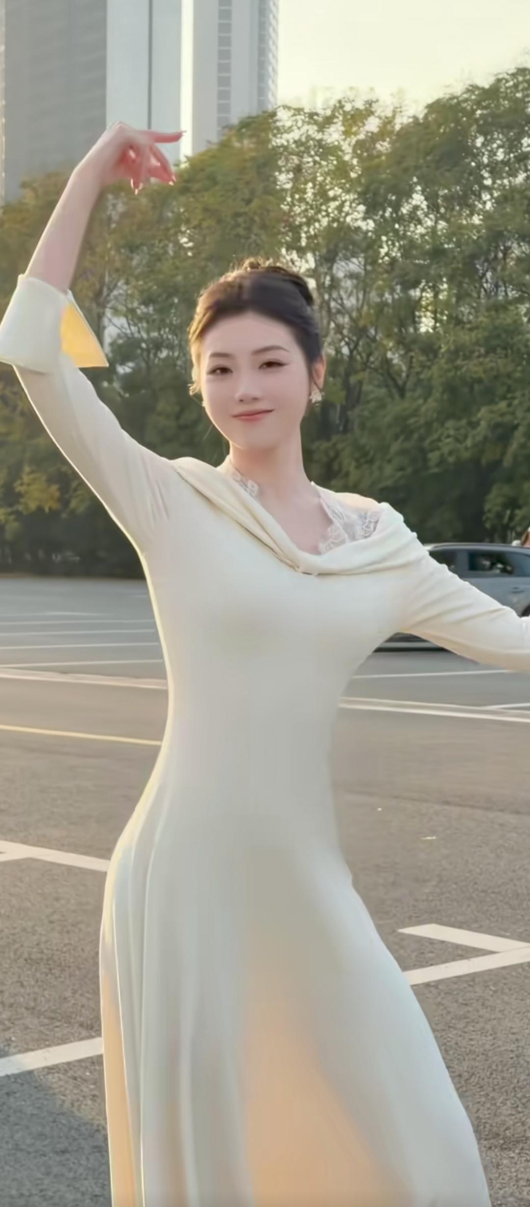 优雅舞姿,裙摆飞扬,城市绿意中尽显柔美。
