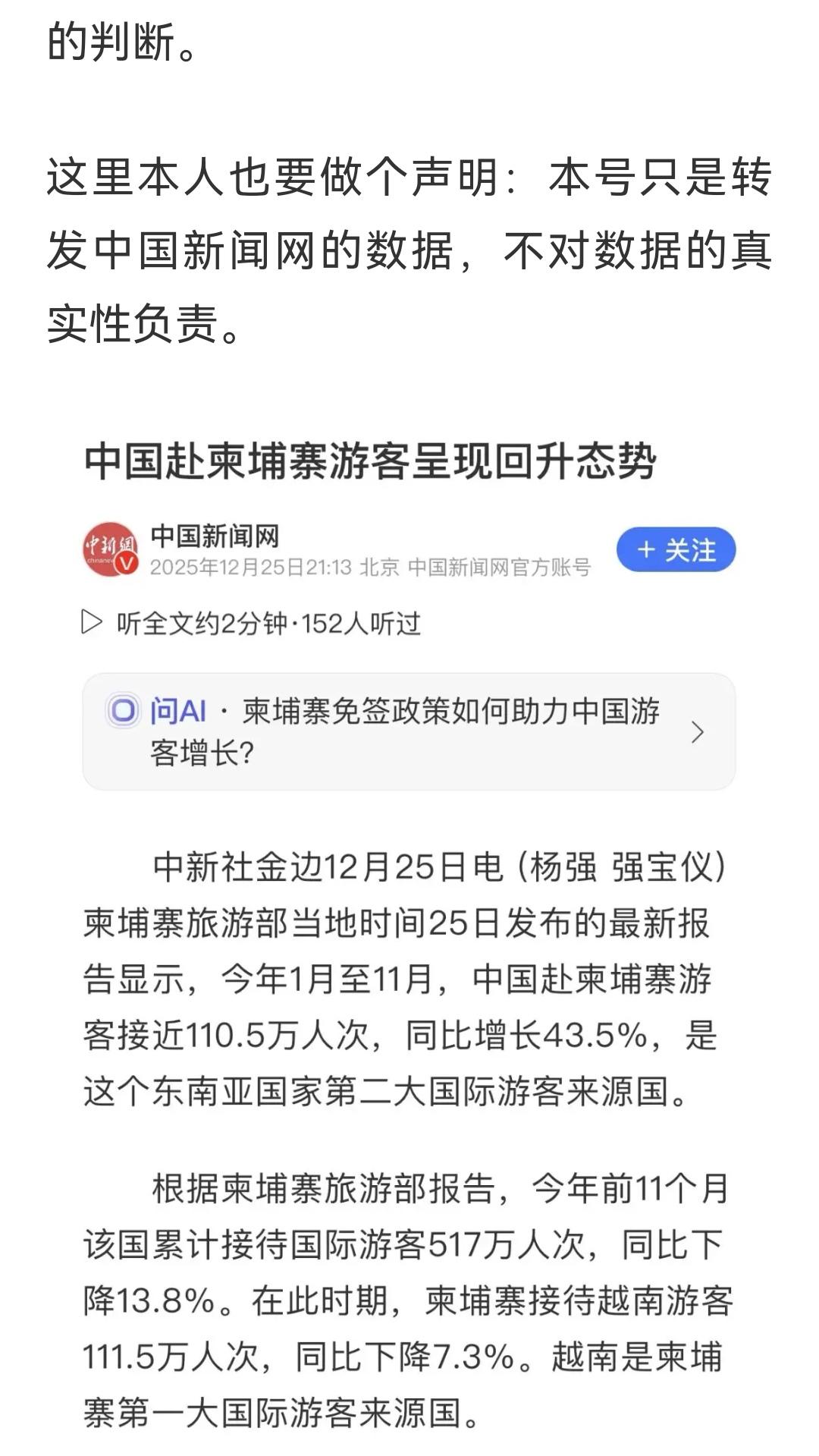 祝贺中国赴柬埔寨旅游人数创历史新高,取得巨大成就,王文斌大使功不可没!俄罗斯旅游增长率也不会低于这个数,好事!好事一桩桩一件件,让两国人民走的越来越近,越来越好!携程鹏程万里!