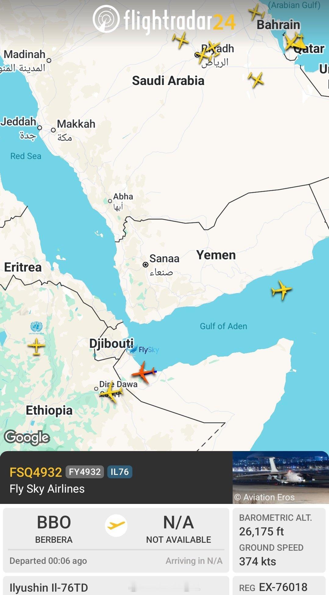 沙特阿拉伯的C-130H运输机降落在阿联酋实际控制的也门索科特拉岛,阿联酋的伊尔-76TD运输机飞往东非(给苏丹叛军送物资)。