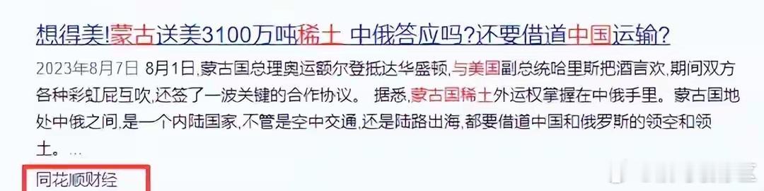 蒙古国大胆想法:拿400平方公里和中国换通道?想将稀土运往美国国际上有条消息挺耐人寻味。美国和蒙古国走得越来越近,又是签协议又是谈合作,核心就是冲着“关键矿产”来的。更让人意外的是,坊间传出蒙古国为了把稀土运出去,竟想出“土地置换”的招儿。美国官员还把这称作创造性方案。这事儿听着就玄,到底可行性有多少?蒙古国心里到底打着什么主意?先说说美国和蒙古为啥突然走得这么近。关键原因就一个:稀土。现在美国高端制造业,比如造芯片、新能源汽车、战斗机,都离不开稀土,可美国自己的稀土产能严重不足,80%以上的稀土都得从中国进口。这就意味着,一旦遇到贸易摩擦,美国的高端制造业就容易被“卡脖子”。所以这些年,美国一直在全球找稀土“备胎”,而蒙古正好撞在了美国的“枪口上”。蒙古的稀土储量可不低,有3100万吨,占全球近两成,这么大的储量,自然成了美国眼中的“香饽饽”。从2023年开始,美国就主动凑上去和蒙古套近乎,不仅把两国关系升级成“战略伙伴”,还签了不少关于稀土合作的备忘录。说白了,美国就是想绕开中国,在蒙古搞一条属于自己的稀土供应链,这样往后就不用再看中国的脸色了。美国有需求,蒙古也有自己的小算盘。蒙古是个内陆国,北边靠着俄罗斯,南边挨着中国,所有进出口货物都得经过这两个国家。之前蒙古的进出口大多走中国的天津港,2024年中蒙贸易额达到186.2亿美元,占了蒙古外贸总额的85%。虽然和中国合作稳定,但蒙古总觉得“鸡蛋都放在一个篮子里”不保险,想找条新出路把稀土卖给美国等西方国家,可运输问题一直卡着脖子。就在这时候,蒙古想出了“土地置换”这个看似能解决问题的招儿。2025年,蒙古提出了一个挺激进的方案:想用自己西部400平方公里的戈壁滩,换中国新疆奎屯山附近54平方公里的土地。为啥非要换这儿?因为换完之后,蒙古就能直接连通哈萨克斯坦,借中亚的通道把稀土运到西方。听起来好像一举两得,既解决了运输难题,又能拓宽外贸渠道,但这方案从一开始就不现实,根本行不通。最核心的问题就是领土主权,领土是每个国家的核心利益,别说中国不会同意这种土地置换的要求,北边的俄罗斯也绝不会认可。毕竟蒙古夹在中俄之间,这两个大国都不可能容忍第三方势力借着“通道”渗透进来。而且哈萨克斯坦也有自己的顾虑,担心卷入大国之间的博弈,不想当这个“运输跳板”,怕引火烧身。果不其然,到了2025年10月,这个方案因为触及了中俄的主权底线,再加上哈萨克斯坦的不配合,彻底没了推进的可能,只能不了了之。蒙古的方案泡汤了,美国却趁机加大了拉拢力度。美国官员跳出来说这个土地置换方案是“创造性方案”,其实就是想借这个由头,推进它在蒙古的“第三邻国”策略。啥是“第三邻国”策略?简单说就是让蒙古除了中俄之外,再找个强大的“伙伴”,也就是美国,来平衡地缘关系。为了拉拢蒙古,美国许下了不少承诺,说要给蒙古几亿美元援助,用来修路、建水利设施,还会提供技术支持,甚至提议搞“空气桥”,用空运的方式把稀土运出去。可这些承诺看着美好,实际上大多是“画饼充饥”的空头支票。就说空运稀土这个提议,更是不切实际。稀土是大宗商品,运量大、重量沉,空运的运费比海运高100倍还多,长期这么运,成本根本扛不住,蒙古和美国都承受不起。美国心里的小算盘其实很清楚,就是想利用蒙古的地理位置牵制中俄,把蒙古当成大国博弈的棋子,等达到目的后,说不定就不管蒙古的死活了。就算抛开土地置换和美国的空头支票,蒙古想靠稀土赚钱,还有一大堆难事儿解决不了。首先就是基础设施太落后,蒙古全国就一条高速公路,还是中国援建的,铁路也只有两条,分别连通中国和俄罗斯。稀土矿区的道路大多是砂石路,一到雨季就泥泞不堪,运输直接中断。而且矿区需要的电力、供水网络也很落后,很多都得依赖中国跨境输送。想升级这些基础设施,需要大量的钱,蒙古自己根本拿不出来,靠美国那点不靠谱的援助更是杯水车薪。其次是没技术、没完整的产业链。稀土可不是挖出来就能用的,开采出来后需要复杂的分离提纯工序,才能变成可用的高端材料。现在全球92.3%的稀土分离提纯产能都在中国,中国能把稀土纯度提到99.999%以上,还掌握着439项独家专利技术。蒙古根本没有这些核心技术,也没有完整的产业链,就算挖出稀土,也只能卖廉价的原矿,赚不了几个钱。想建分离提纯工厂,不仅需要巨额投资,还得花十几年时间,西方国家也不愿意花120亿美元、等10年帮蒙古建这个加工体系,它们更愿意直接从中国买现成的高端稀土产品。还有环境问题,这也是蒙古绕不开的坎儿。稀土提炼是高污染、高耗水的产业,每吨稀土提炼需要消耗200吨水,还会产生大量废水、废气和放射性废渣。可蒙古本身是个缺水国家,年均降水量只有200毫米,76%的国土都面临沙漠化。如果真搞大规模的稀土提炼,当地的生态环境会彻底恶化,甚至无法恢复,这对蒙古来说无异于“自杀”。说到底,蒙古之前想靠土地置换绕开中俄,靠美国的承诺解决问题,都是不切实际的幻想。在稀土产业链上,蒙古和中国的联系早就密不可分,无论是运输、技术还是市场,中国都能提供关键支持。只有放弃那些“天马行空”的想法,踏踏实实和中国务实合作,蒙古才能把稀土资源变成实实在在的财富,真正实现
