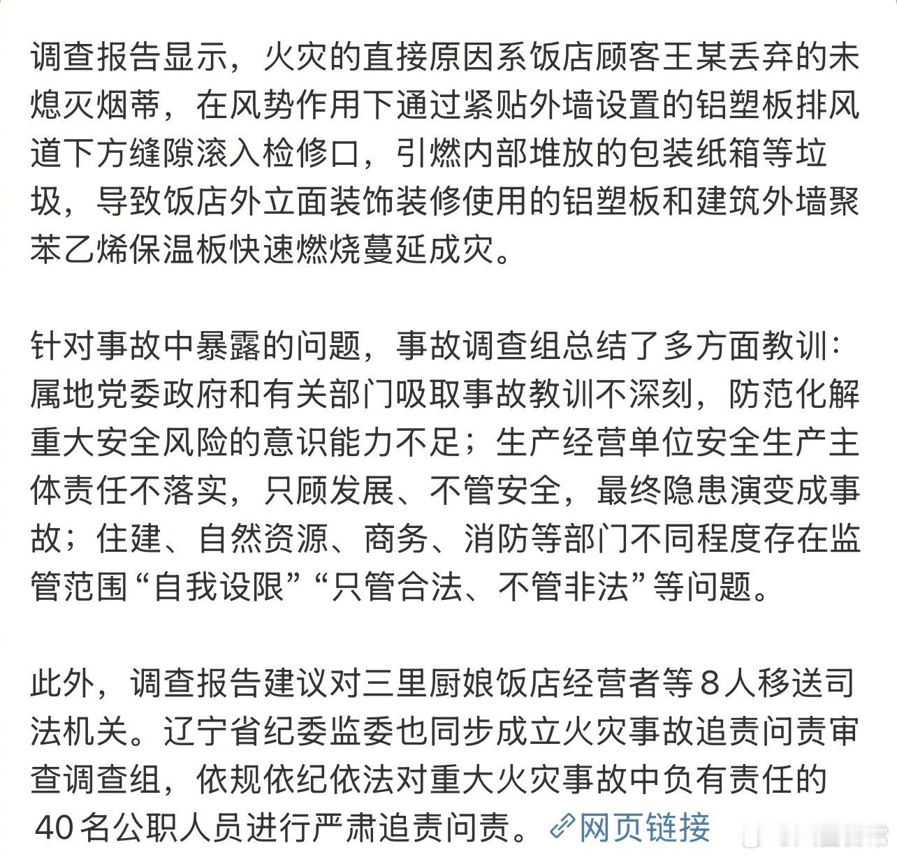 辽阳饭店22死重大火灾事故调查报告出来了,是顾客扔烟蒂引发辽阳22死重大火灾事故调查报告