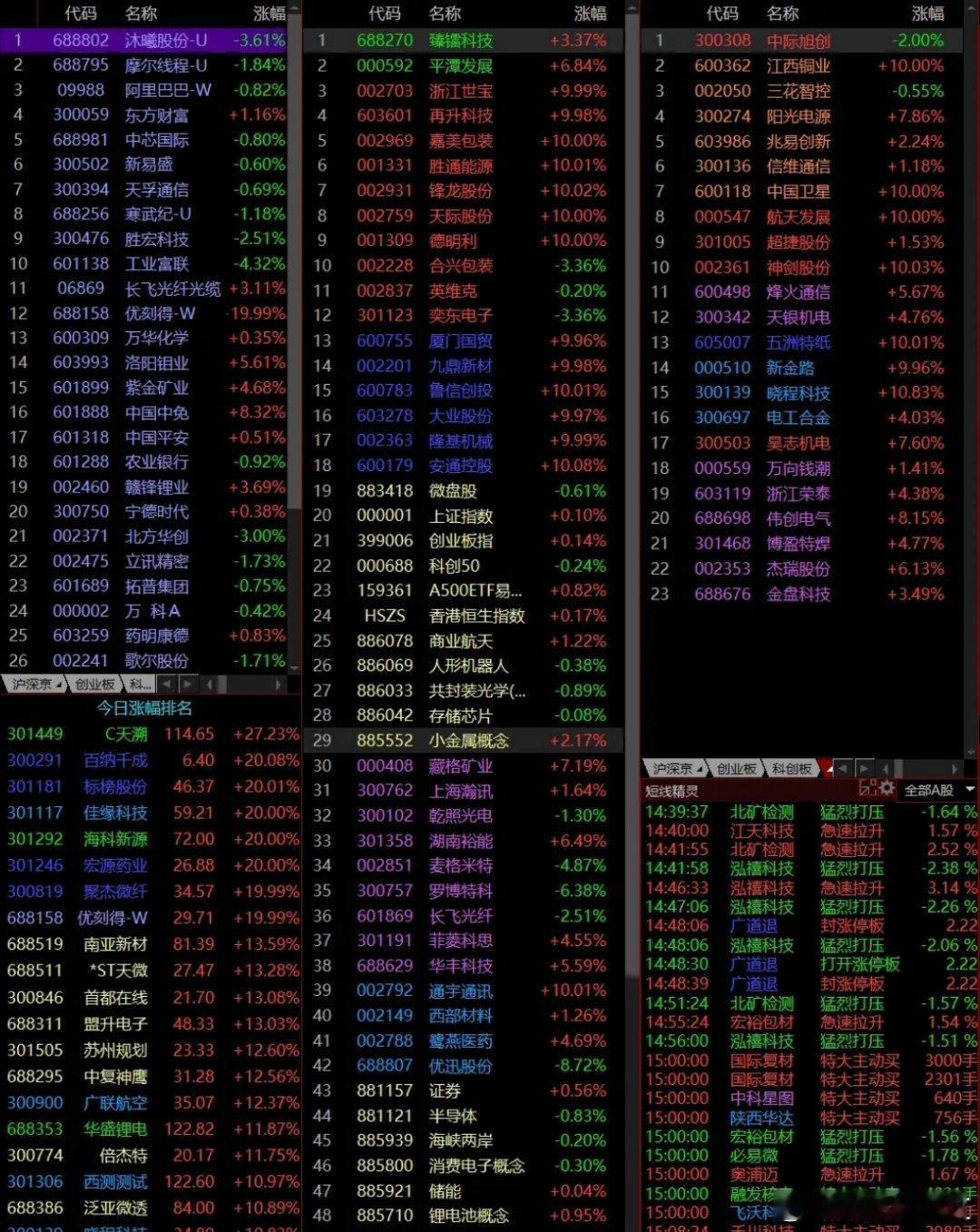 12月29日 周末利好加持的板块核心一、科创板商业火箭ipo标准扩容,适用摄第五套科创板上市标准。利好商业航天。前排核心:航天发展、中国卫星、神剑谷份、通宇通信、中超控谷。二、周五隔夜美谷商业航天板块大跌近3%。主要原因是前期受政策刺激长得太高涨得太猛,估值需要修复。二是我对美实施的30条反制措施,对其航天军工的上游企业原材料形成打击,产生了心理威慑。利空商业航天板块,会映射到我们今天的开磐。三、高层表示明年将实施更加积极的财政政策,大力提振消费,扩大财政支出的盘子,及时支持消费品以旧换新。利好大消费。前排核心:东百集团、百大集团、安记食品、平潭发展、海南发展、中国中免等等。四、迎战英伟达,华为拟在韩国推出自研芯片昇腾950。华为韩国明年还将通过向韩国国内企业供应其自主研发的开源操作系统和鸿蒙,来促进生态系统的发展。利好华为概念。前排核心:佳缘科技、烽火通信、优刻得到、首都在线、华胜天成、拓维信息、常山北明等等。资本市场最大的确定性就是没有确定性。隔夜国内外的政策面、消息面,个古的基本面、技术面必须要面面俱到。利好不一定能涨,利空不一定能跌。一切以市场实际走势为准!!!