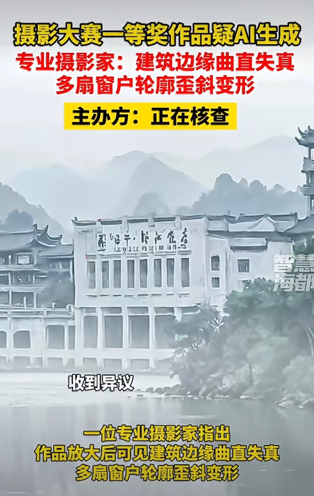 摄影大赛一等奖作品被指AI生成 一眼假啊,要么用AI优化过,要么手机拍摄中AI算法优化过。。。