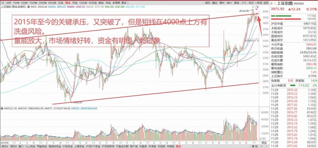 国际银价持续暴涨,注意贵金属回踩洗盘风险。A股沪指日线9连阳,后续行情怎么看? 1、美股商业航天大跌 上周五,美国结束圣诞假期照常开始,三大指数纷纷横盘微跌,主要科技股涨跌参半,没有出现异动。但是此前异常火爆的商业航天方向出现较大的回调。太空概念股Sidus Space当天从涨超53%,到收盘下跌12.27%。但是商业航天仍然是后续中美两国发展的重要方向,短线存在情绪调整的风险。 2、国际银价疯狂上涨,贵金属继续走高 周末最大的消息当属国际银价的疯狂暴涨,在前期连续创新高的基础上,周五的纽约COMEX白银遭遇了逼空行情,空头无白银现货交割,造成国际银价当日疯狂上涨11.15%。芝商所紧急全面上调黄金、白银、锂等金属期货品种的履约保证金,从今天收盘后生效,但是仍然不能阻挡今天上午国际银价继续疯涨4%。 3、A股港股同步上涨 上午港股恒生指数高开0.43%以后,午间涨幅回落至0.3%附近,而恒生科技指数经过我近期连续提醒关键支撑的机会,上午爆发大涨,午间涨幅在1.7%附近。A股上证指数从12月16日探底3815点以后,直到今天上午走出日线9连阳,午间收在3975点,涨0.31%。 4、2个小时成交1.4万亿! 上午指数略有分化,深证成指和科创50指数午间收盘分别上涨0.03%和0.91%,半导体板块走势强势,带动了科创50指数的上涨。电气设备板块走弱,创业板指午间收跌0.32%。上午仅2小时,成交额高达1.4万亿,成交额并没有较上周五回落,市场情绪复苏较为明显,预计全天成交守2万亿。 5、已经在春季行情中了 很多股民问春季行情何时到来,实际上目前日线9连阳,成交额大幅复苏,市场已经在春季行情之中。呈现的明显现象是大宗商品市场的牛市,同时资金入场的意愿明显。炒作的方向仍然是局部分化行情,非银金融也在大势的风口上,保险持续走强,多元金融也在周五形成突破,证券板块则即将突破。 综上所述,目前A股虽然仍然在盘整区间,但是9连阳以后,6124点到5178点的下行趋势已经形成突破了,2015年至今的关键通道承压,也同样突破了。大盘要注意4000点上方的盘整区间短线承压回踩的风险,行情仍然在局部热点,有色、非银金融、商业航天、核聚变等。