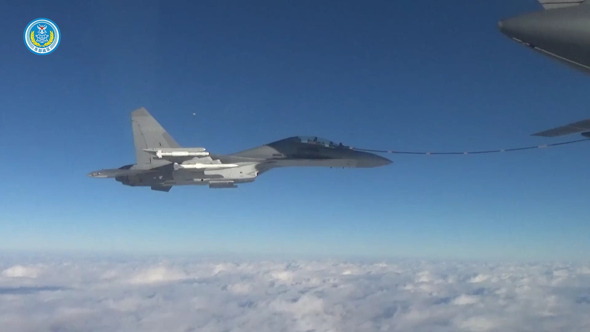 滑跑中的歼-20(注意蒙皮)挂载霹雳-10/12实弹的歼-10B加力起飞挂载霹雳-10/15实弹的歼-16空中加油烽火问鼎计划东部战区