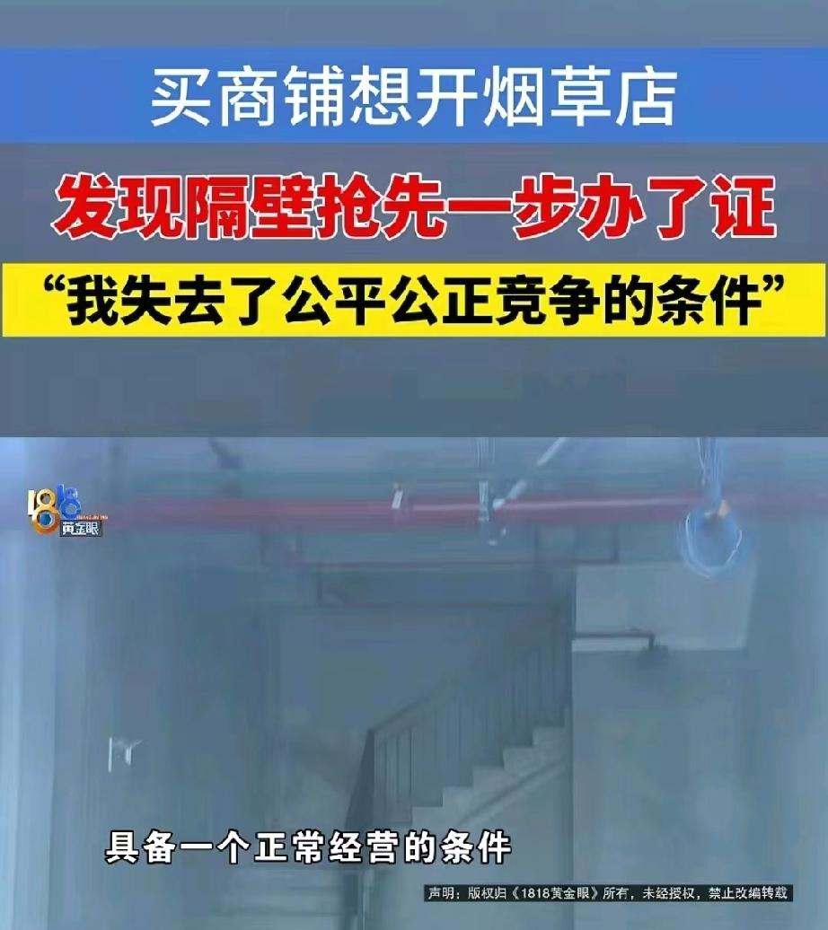 浙江金华,女子交10万元定金,买了套沿街商铺,准备开烟酒店。谁知,就在她等待网签过程中,竟然发现隔壁商铺已经抢先一步办了营业执照和烟草许可证。但蹊跷的是,对方不仅在交定金当天竟然就办好了营业执照,商铺还没有交付,里面空空如也,是如何申请到烟草许可证的?女子严重怀疑,对方办理途径不正规,让她失去了公平竞争的条件,于是,向此事曝光给了记者。 周女士看中了一处沿街商铺,地段繁华,她准备开一家烟酒店,大赚一笔。 她知道这处地方肯定特别抢手,所以一开卖,就立马下手。12月17号,她痛快地付了10万定金,签了认购合同,就等着开发商安排网签。 开烟酒店不光得有铺子,必须得办营业执照和烟草专卖许可证。 按照正常程序,办理烟草证必须有一个合格的经营场地,货架都得摆在店铺内齐全,具备正常的经营条件,而且100米以内不能有其他的同行。 为了能顺利办到这些证件,周女士已经定好货架,规划好摆放位置,就想着等网签一结束,马上着手办证流程,早点把店开起来。 可没想到,就在这个等待的过程中,她无意中发现隔壁那间还没卖出去的商铺,竟然已经抢先一步申请了营业执照,甚至把烟草专卖证都办下来了。 周女士心里咯噔一下,她觉得非常奇怪,产权明明还在开发商手里,根本还没网签过户给任何人,隔壁那个人是怎么能办出来营业执照的? 她不死心,特意跑到政府公开的查询平台上,用那个商铺的地址一查,结果让她大吃一惊。 那间商铺在12月17号,也就是交定金那天,就已经拿到了营业执照,更离谱的是,12月19号就取得了烟草专卖许可。 这事太蹊跷了,她越想越不对劲,她猜测,对方肯定是拿到了开发商开出的某种证明,盖了个章,所以工商登记和烟草许可才能顺利用办下来。 而且,办烟草证是有实地检查的,按照规定,申请时店里起码货架要摆好,有正常营业的状态才行。 可目前,隔壁那间铺子根本就是空的,任何装修和陈设都没有,究竟是怎么通过审核的? 她又气又急,非常憋屈,为了解决这个麻烦事,她赶紧找到商铺的营销中心,想找负责人讨个说法。 结果,工作人员称负责人不在,事情就这样搁着,没人给她一个明确的答复。 周女士的诉求很明确,就是希望开发商能去跟隔壁商量,让对方把那个营业执照注销掉。 不然,按照烟草专卖的规定,两家烟酒店距离不能少于100米,现在隔壁卡着位置先占了证,她的店根本开不了,这生意还没开始做就黄了,让自己失去了公平竞争的权利。 可对方态度强硬,拒绝沟通,一点商量的余地都没有。 后来,周女士也向市场监督管理局反映了情况。 市场监督管理局回应说,查了记录,隔壁那家食品商行是在12月16号,也就是她付定金的前一天就通过网络提交了办营业执照的申请。 包括身份证明、登记申请书、房屋租赁合同还有经营场所使用证明这些材料。 经审查,材料齐全,符合要求,就在12月17号核准登记了。 现在,市场监督管理局表示已经收到了周女士的问题,正在积极调查,等调查结束会给她一个反馈结果。 周女士一肚子委屈,自己看好的铺子,明明第一时间下手了,还提前做了那么多准备,结果半路杀出这么个程咬金,手续还办得这么快这么巧,这口气实在难咽。 她希望官方能尽快查个水落石出,给自己一个说法。 《市场主体登记管理条例》第十六条规定:申请办理市场主体登记,应当提交下列材料,并对材料的真实性、合法性和有效性负责: (一)申请书;(二)申请人资格文件、自然人身份证明;(三)住所或者主要经营场所相关文件;(四)公司、非公司企业法人、农民专业合作社(联合社)章程或者合伙企业合伙协议;(五)法律、行政法规和国务院市场监督管理部门规定提交的其他材料。 登记机关以隔壁商户12月16日提交材料齐全、符合形式为由,12月17日核准营业执照,表面看符合“材料齐全、形式合法”的登记要求。 但是,产权仍属开发商、未交付的商铺,其“经营场所使用证明”是否合法有效?开发商出具的证明能否替代合法产权或有效租赁关系证明? 若证明存在虚假或无权处分情形,将违反该条“材料真实、合法、有效”的核心要求,构成登记瑕疵,周女士可要求市场监管部门进一步核查材料真实性,若查实虚假材料,有权申请撤销该营业执照。 《烟草专卖许可证管理办法》第二十四条规定:经审查,申请人的申请符合法定条件的,烟草专卖局应当自受理申请之日起二十日内作出许可书面决定。…… 烟草专卖局应当自作出予以发放烟草专卖许可证决定之日起十日内向申请人送达烟草专卖许可证。 隔壁商户12月19日即取得烟草许可,远超常规审批时限,且商铺未交付、无货架等经营条件,明显不符合“具备正常经营条件”的实质审查要求。 周女士可要求烟草部门撤销该烟草专卖许可证,若部门不作为,可依法申请行政复议或提起行政诉讼,维护自身公平竞争权。