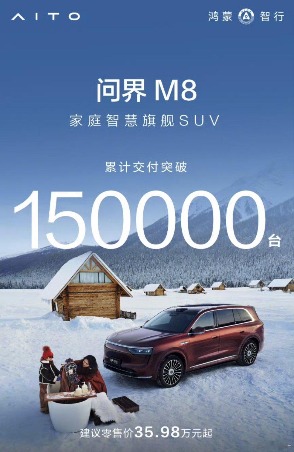 问界M8交付突破15万上市8个月,累计交付突破15万辆,这可是一台单价40w的豪华SUV啊……这销量表现,确实有点东西问界m8