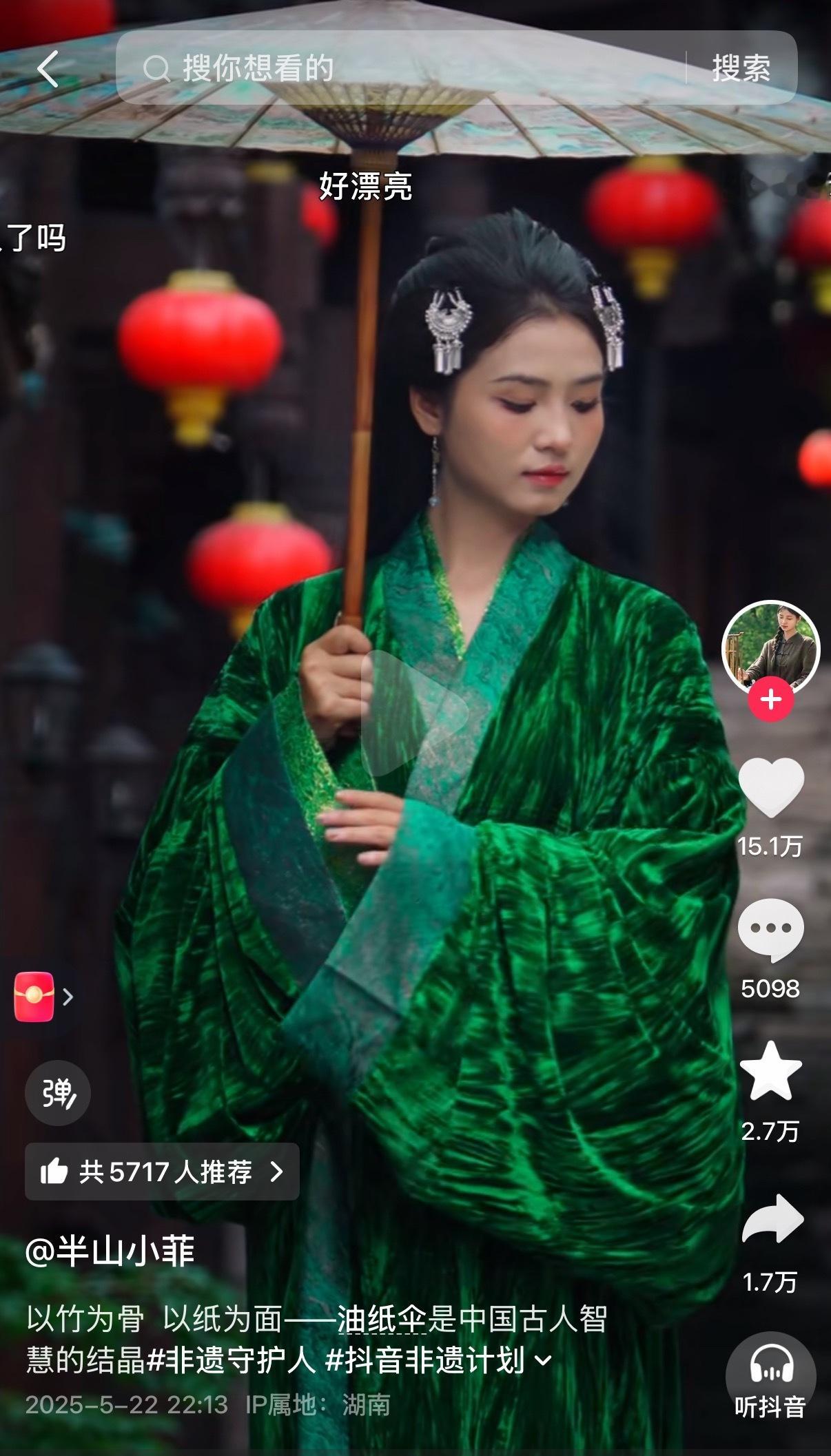 🍊的衣服(露芜衣绿色秦汉服)已经不仅闯进了短剧圈 非遗圈也闯进去了