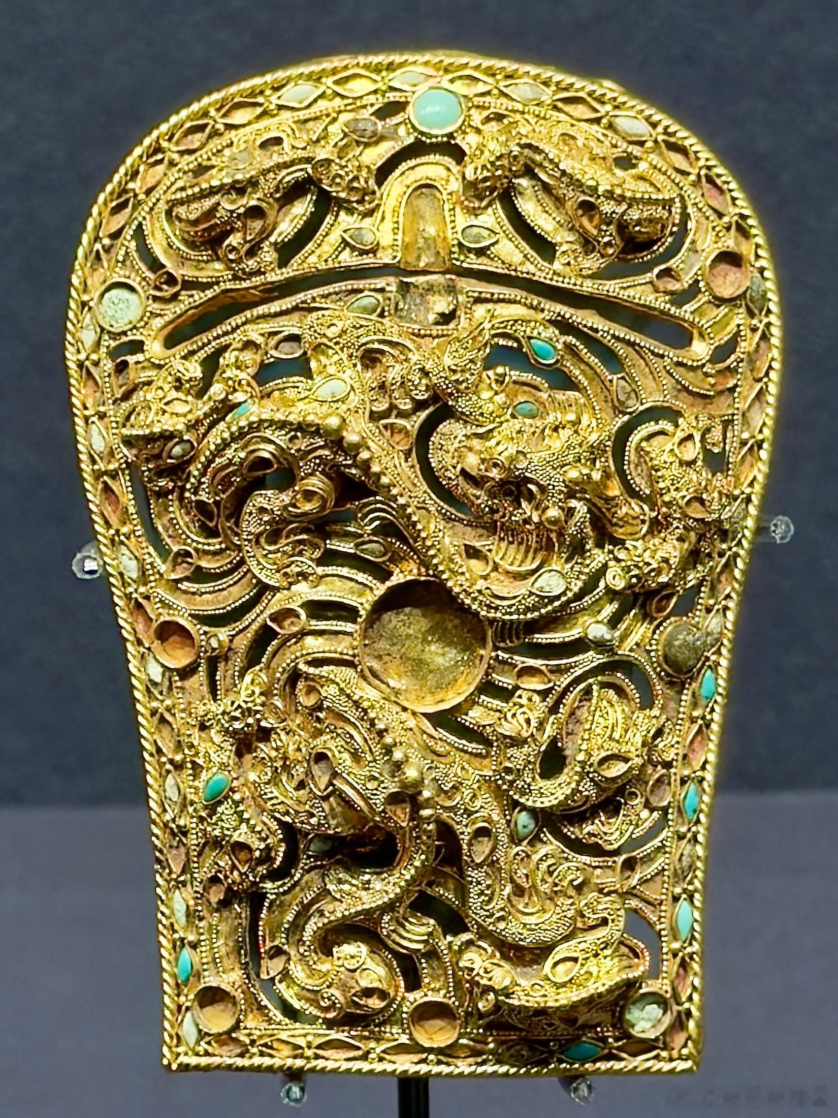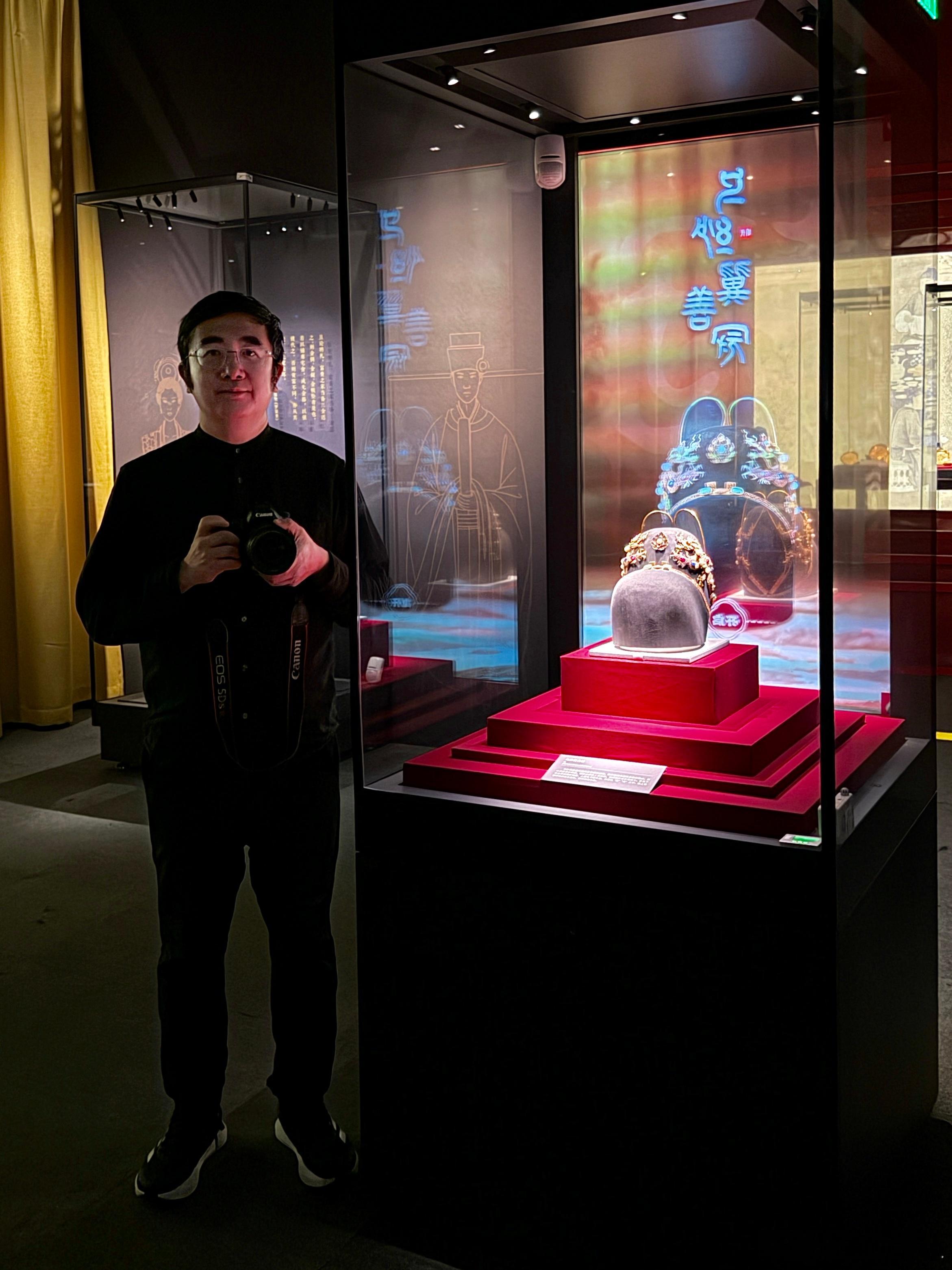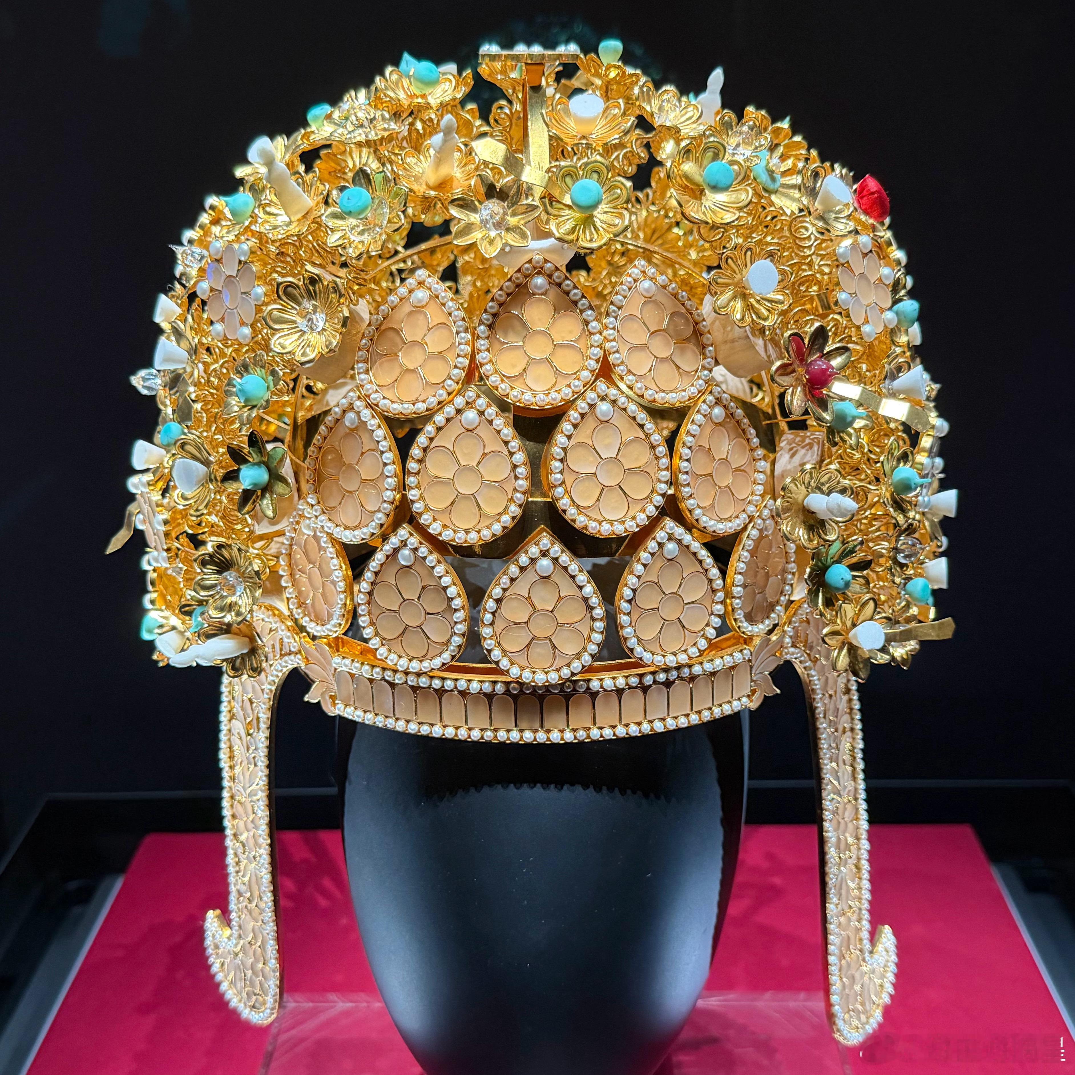 「金耀九州」中国古代金银器的文明印记 安徽博物院年度特展。本次展览是安徽举办的有史以来规模最大的金银器特展,汇集先秦至明清时期的金银器362件(套),其中国家一级文物139件(套),涵盖三星堆、金沙、武王墩、燕下都、海昏侯、何家村、法门寺、江口沉银、明定陵等全国各地的重要考古遗址出土文物。展览分为「精工饰纪」「器载万象」「财富尺度」「万象光华」四个部分,全景式展现中国金银器的起源、发展、繁荣与创新历史,突出各个历史时期金银器工艺特点,阐释其工艺流变所蕴含的历史文化信息。我最喜欢图1宁夏的金版,图8扬州隋炀帝萧皇后金冠是个复原的复制品。合影的是万历皇帝的善翼冠。宝物亲见,合影留念