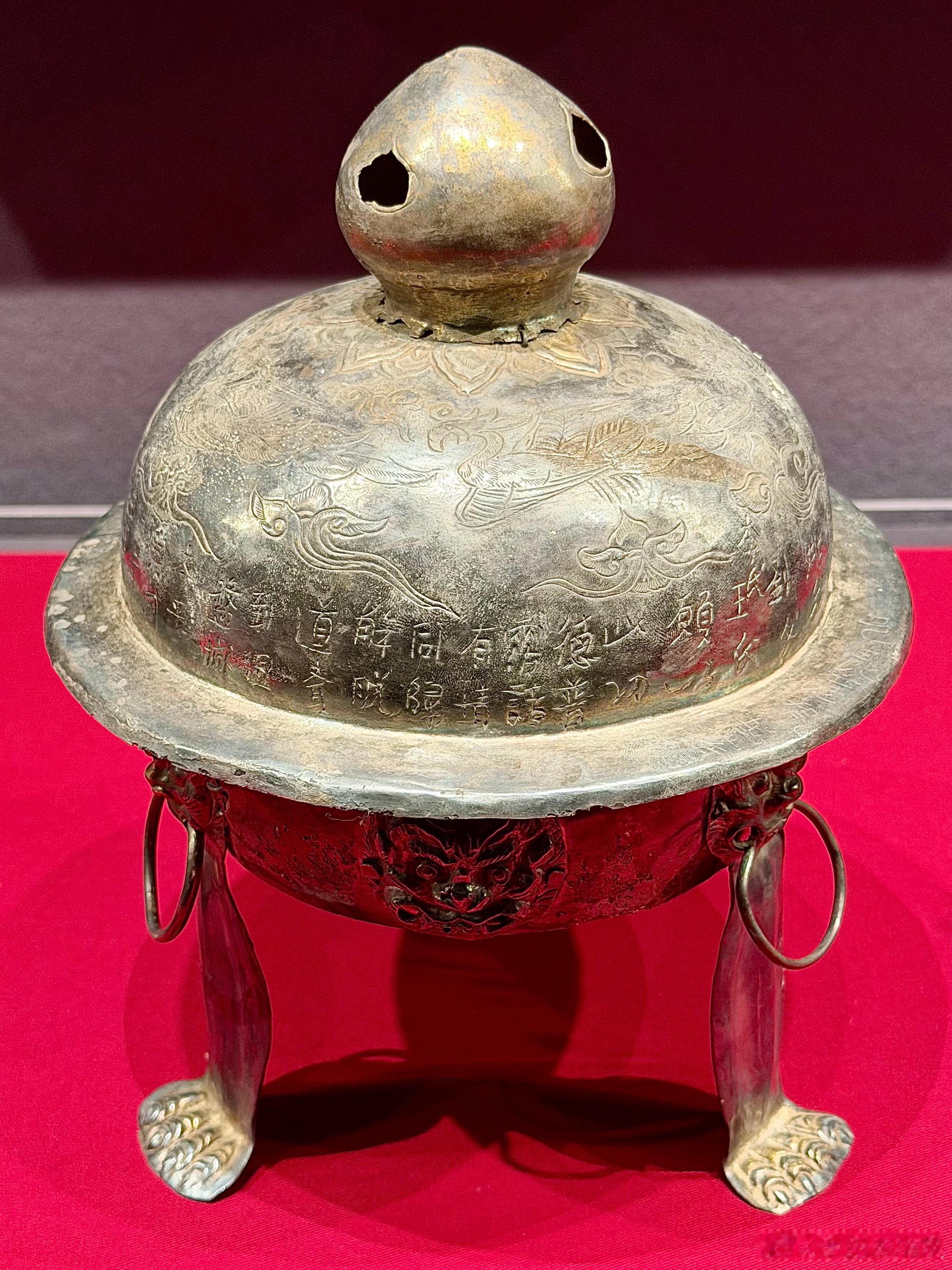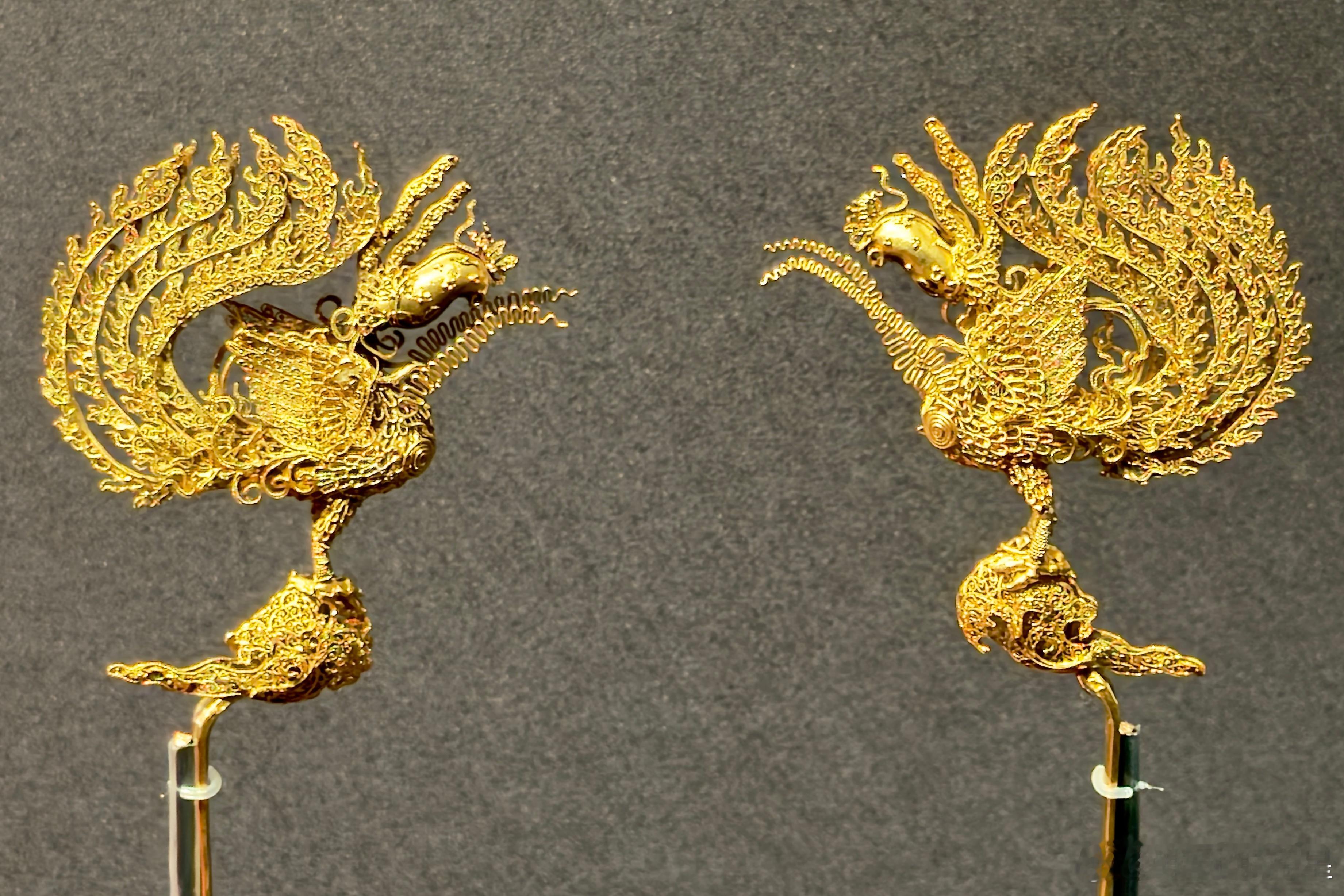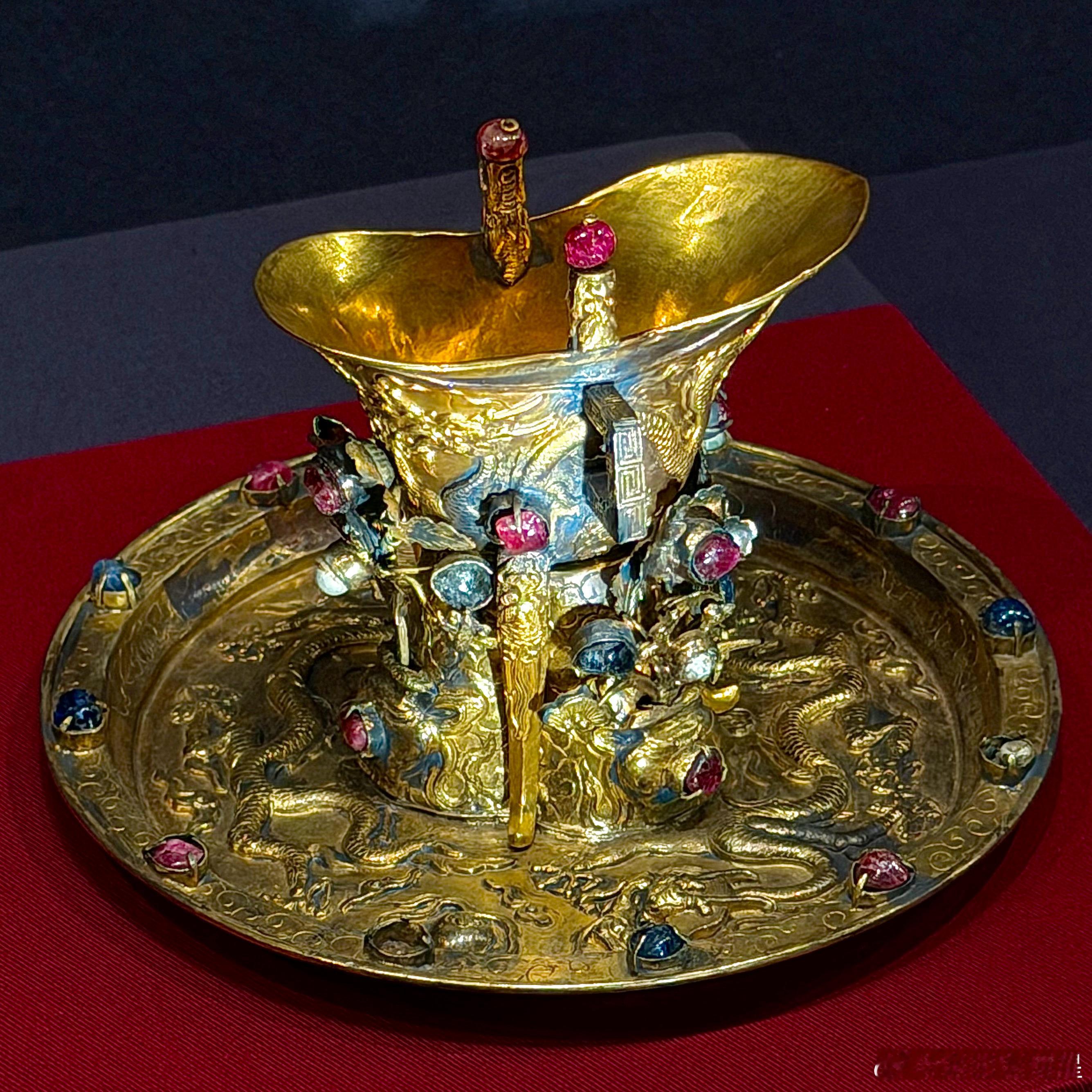 「金耀九州」中国古代金银器的文明印记 安徽博物院年度特展。本次展览是安徽举办的有史以来规模最大的金银器特展,汇集先秦至明清时期的金银器362件(套),其中国家一级文物139件(套),涵盖三星堆、金沙、武王墩、燕下都、海昏侯、何家村、法门寺、江口沉银、明定陵等全国各地的重要考古遗址出土文物。展览分为「精工饰纪」「器载万象」「财富尺度」「万象光华」四个部分,全景式展现中国金银器的起源、发展、繁荣与创新历史,突出各个历史时期金银器工艺特点,阐释其工艺流变所蕴含的历史文化信息。我最喜欢图1宁夏的金版,图8扬州隋炀帝萧皇后金冠是个复原的复制品。合影的是万历皇帝的善翼冠。宝物亲见,合影留念