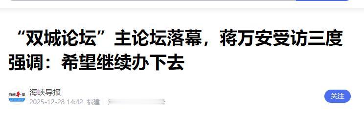 解放军环台军演已经开始,这次最尴尬的不是跳梁小丑赖清德,也不是刚刚批准军售的特朗普,也不是妄言台海议题的高市早苗,而是刚刚出席双城论坛,才返回台北的蒋万安 2025年12月28日下午,蒋万安的座机在桃园机场降落。他刚从上海回来,包里装着关于双城治理和经贸往来的新方案。 但刚出舱门,台北那种紧绷的空气就扑面而来。这种不安,和他前几天在上海街头感受到的平静,形成了极度强烈的反差。 事情的转折点发生在12月中旬,17号那天华盛顿单方面公开了一项111亿美元的军售计划,里面全是远程火箭炮和自杀式无人机。 最让岛内舆论错愕的是,当时台湾内部还没走完请购流程,美方就直接把账单甩了过来。 111亿美元,这几乎占到台湾全年生产总值的5%。在医疗和教育预算正缩水的时候,这笔钱买回来的,竟然大多是美军已经不用的陈旧备件。 很多民众开始意识到,这更像是在用全岛的积蓄,去填补大洋彼岸军工厂的胃口。 与这种强行摊派相对的,是大陆展现出的现场掌控力。就在12月16日,福建舰航母编队公开穿越海峡,随后在全岛周边展开行动。 现在的海峡,已经不存在所谓的“中线”。大陆公布的卫星影像里,台北街头的路面纹理清晰可见,飞行员甚至能在座舱里用肉眼锁定中央山脉。 在这种技术压制面前,台湾防务部门显得有些无措。赖清德原本想通过大订单换取外部支持,没成想却引燃了民意的火药桶。12月17日发起的弹劾程序,仅仅一天时间,就有500万人签名支持。 大家的逻辑很直白:如果保命的钱都被拿去买过时的武器,这种日子还怎么过? 更深层的焦虑来自核心产业,美国正以“再工业化”的名义,加速拆解并抽走台湾的半导体供应链。这种明目张胆的掏空,让台湾社会陷入了长久的动荡。 就在蒋万安在上海谈论和平与民生时,台北上空正回荡着战机的轰鸣声。在这种激进的对峙中,温和理性的声音听起来非常吃力。 大陆目前的应对逻辑也变了,不再只是军事层面的施压,更是法律、经济与心理的全面组合拳。 12月17日,大陆取消了13.2万吨美国小麦订单,直接打击美国的农业利益,并同步制裁了美国军工高管。 蒋万安这次上海之行,更像是在努力守住两岸之间最后的一点务实联系。双城论坛讨论的直航、避暑、民生项目,这些看起来很细碎的事情,反而是维持局面稳定的底座。 政治博弈往往有输赢,但普通人的安稳日子不该成为代价。保护好这些最基础的民间往来,让大家能过上太平日子,才是当下最清醒的选择。 信息来源:《“双城论坛”主论坛落幕,蒋万安受访三度强调:希望继续办下去》,海峡导报,2025年12月28日。