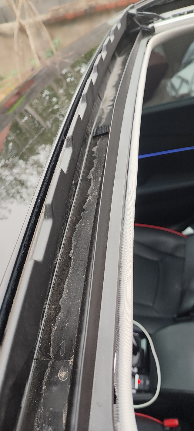 十一代雅阁天窗有点渗水 天窗有点渗水,不知道之前漏没漏过,今天才发现。 天太热,今天闲着就拿水泵呲了好几遍 按理说密封完好的话是一点都不漏的,肯定是有点瑕疵了,车子不到一年总不能是什么胶条老化吧。 沟通效果甚微,估计还是叫来店检查一遍,然后说没什么问题就算了,不是找茬,虽然很少很少但事实就是漏水