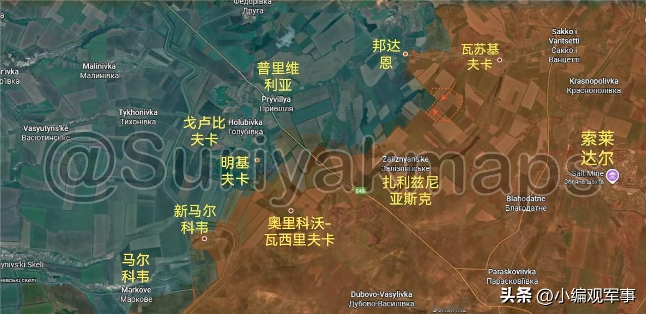 12月29日俄乌最新战报: 1.顿涅茨克州北部前线: 过去一周里,俄军控制了迪布罗瓦村的大部分地区(图一)。 2.索莱达尔方向前线: 过去三天里,俄军继续在瓦苏基夫卡村和扎利兹尼亚斯克村之间推进(图二)。 3.扎波罗热州前线: 过去36小时里,俄军完全占领了胡里艾伯勒市南部T-04-01公路以东的阵地(图三)。