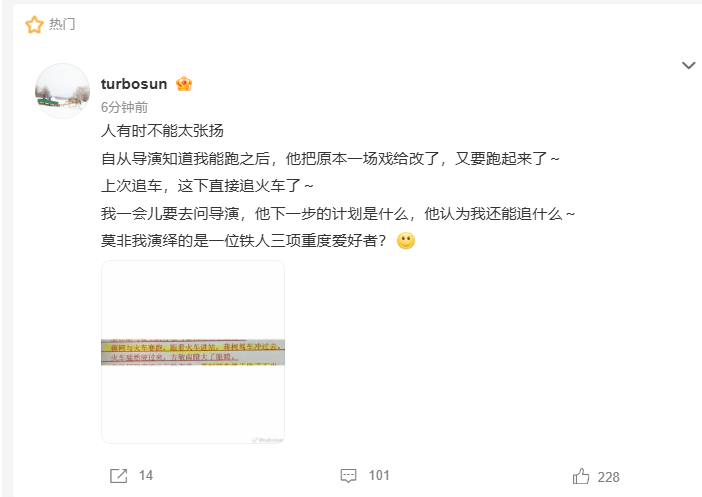 孙俪坦言人有时不能太张扬,坚守低调务实的处事原则,拍摄现场被导演要求追火车,认真态度尽显演员的敬业底色。孙俪人有时不能太张扬导演让孙俪追火车