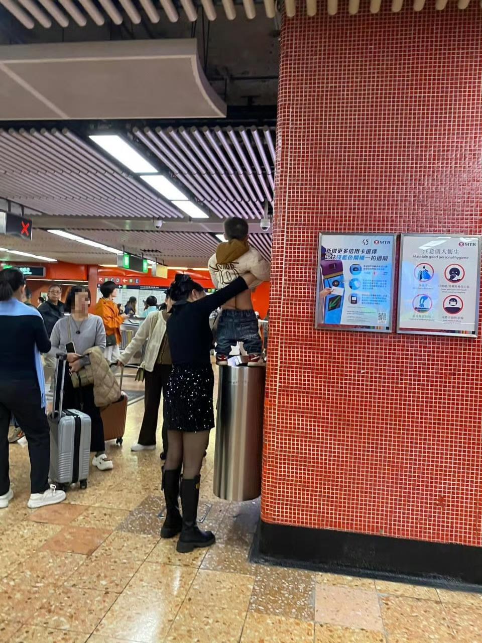 这个旺角地铁站是有厕所的,多走几步就有,真的憋不住,拿个袋子在角落也好,非要站这么高[皱眉]
