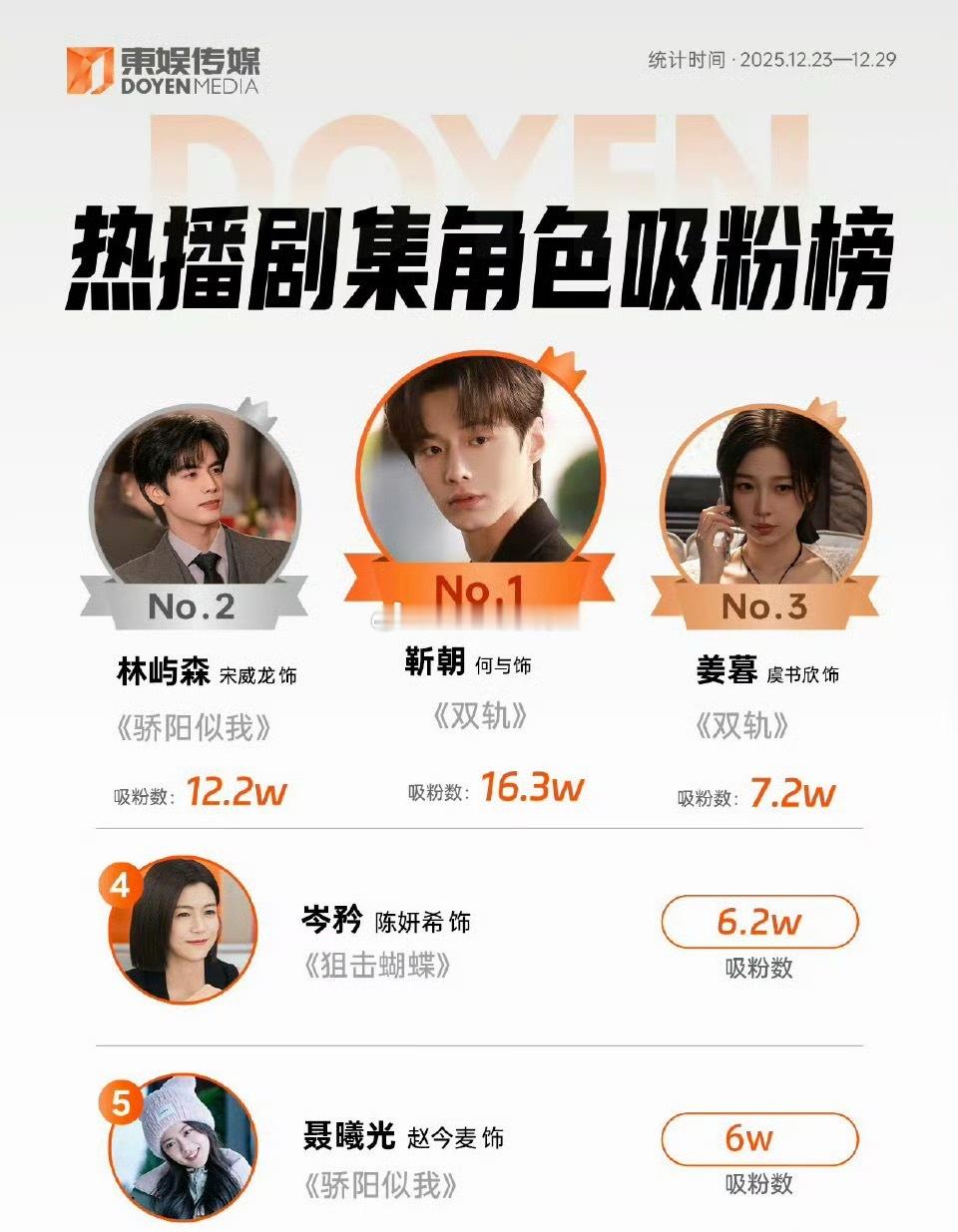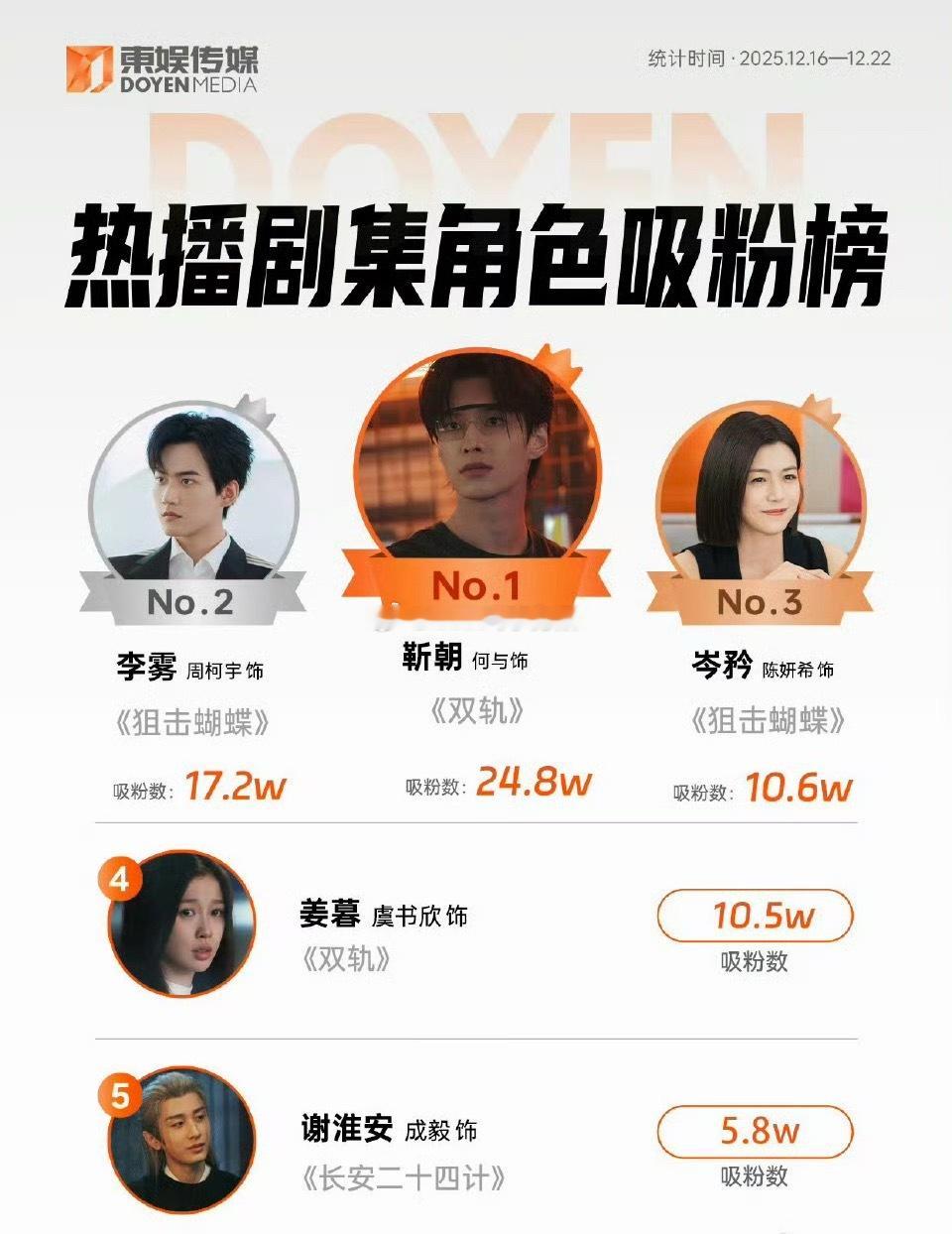 何与连续两周吸粉榜第一,近期播剧中角色吸粉最多的了,《双轨》有效播剧