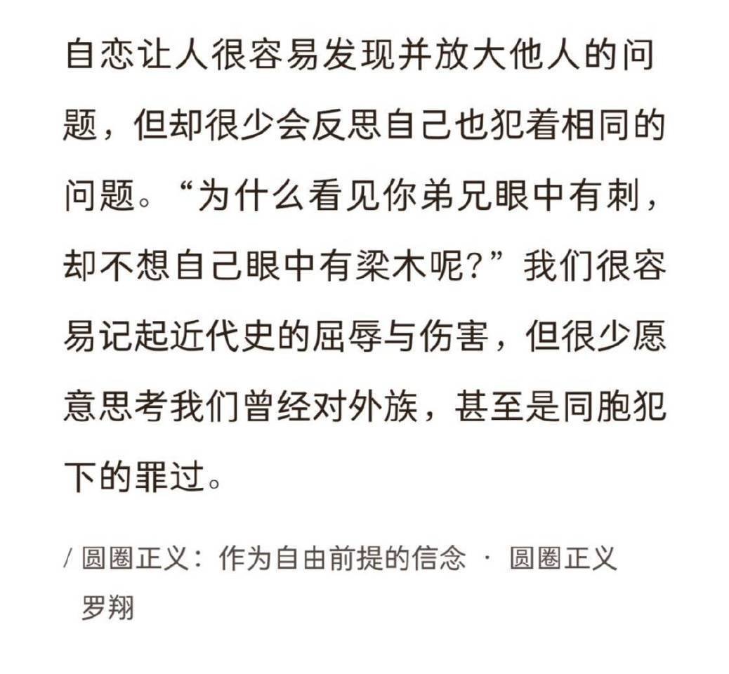 最近很多人在议论罗老师对于民族主义的看法。其实罗老师是推己及人了,他书里是这么写的。他误以为自己的经历能代表大众