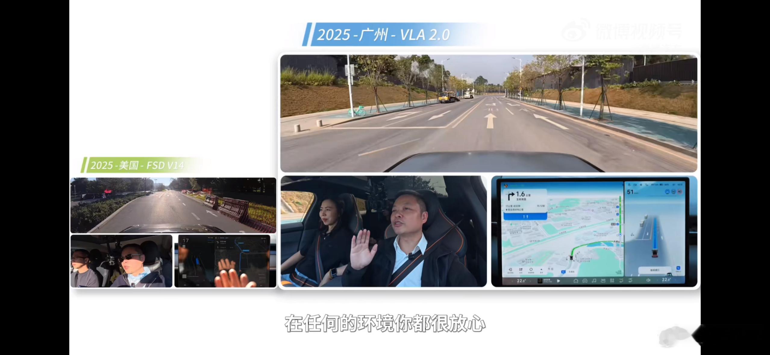 何小鹏9大场景美国对比特斯拉小鹏的VLA 2.0明年一季度就会推送,时间很快了,说实话很羡慕Ultra车主们。从现在的行业动态来看,明年大概率是辅助驾驶的快速进阶年。L3已经在启动路测了,而小鹏、华为这些头部玩家从一开始的目标就是L4,眼光放得更长远。特斯拉的FSD V14很强,经常刷到对应的视频深有感触,所以第一梯队的目标不仅是拥有同样的水平,还要在国内更复杂的路况下表现更出色。这几天对比视频看下来,小鹏VLA 2.0距离成精更近了一步。新能源汽车大v聊车