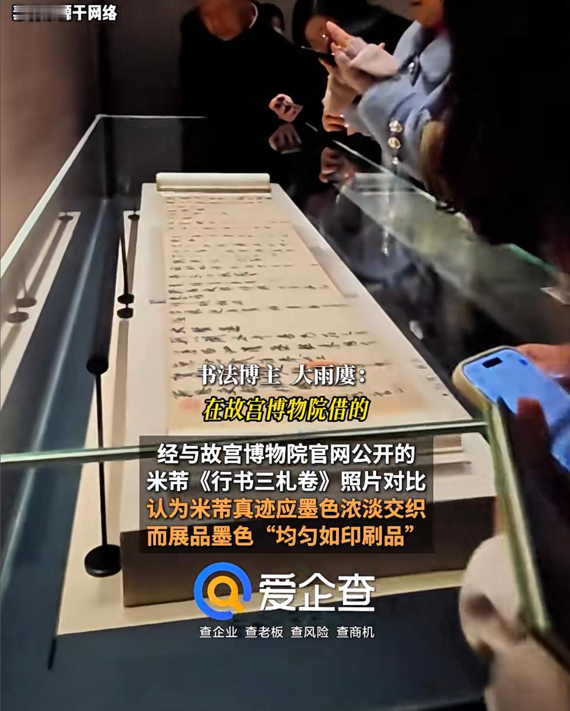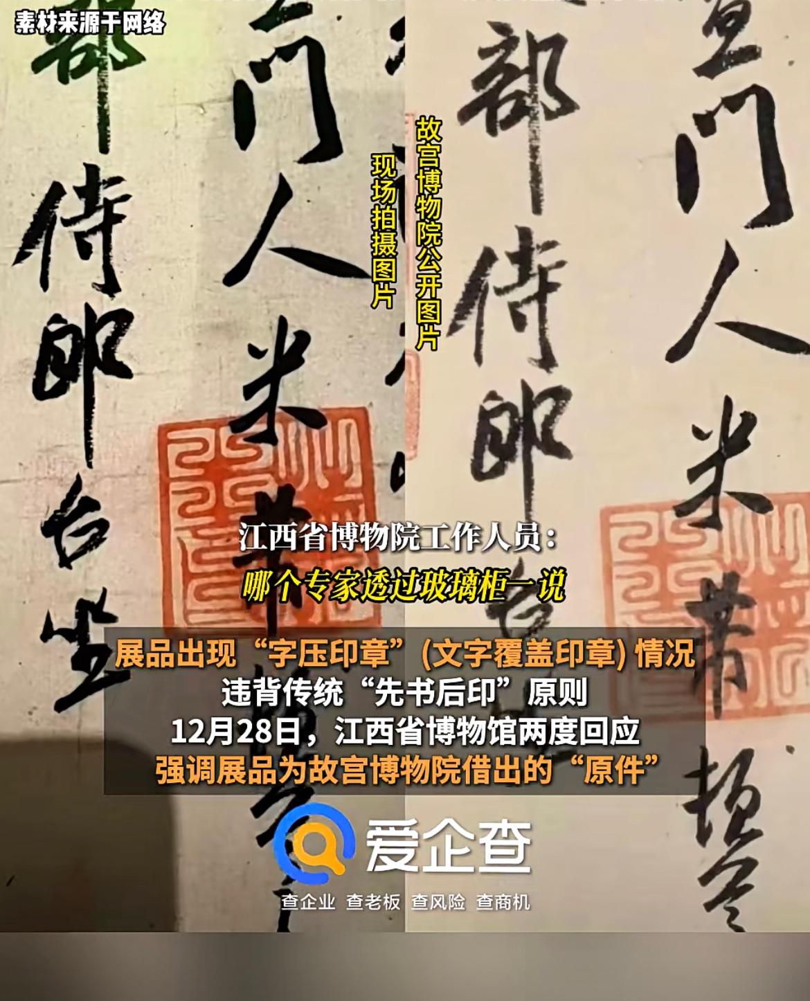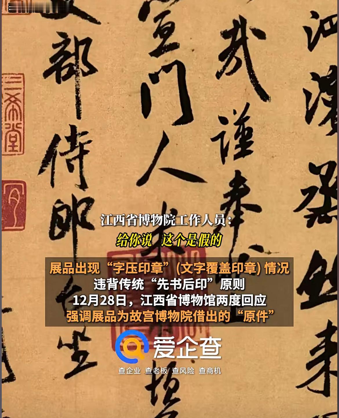 江西省博物馆从故宫借的米芾《行书三札卷》,被前中国书法协会会员质疑为“印刷品”,毫无墨色变化,字在印章上面。 江西省博物馆回应:该展品是原件。 这个大家怎么看呢? 文物 江西省博物馆