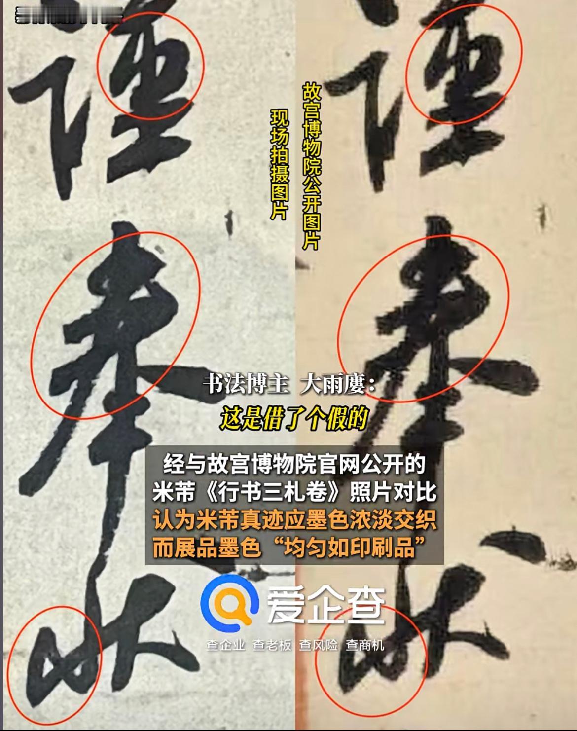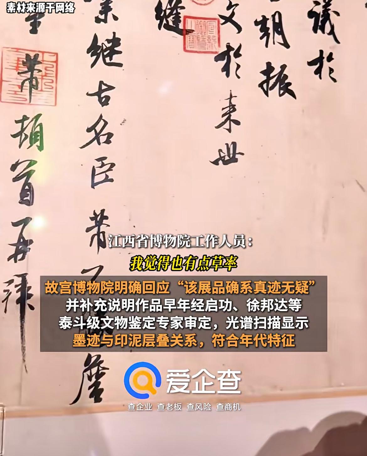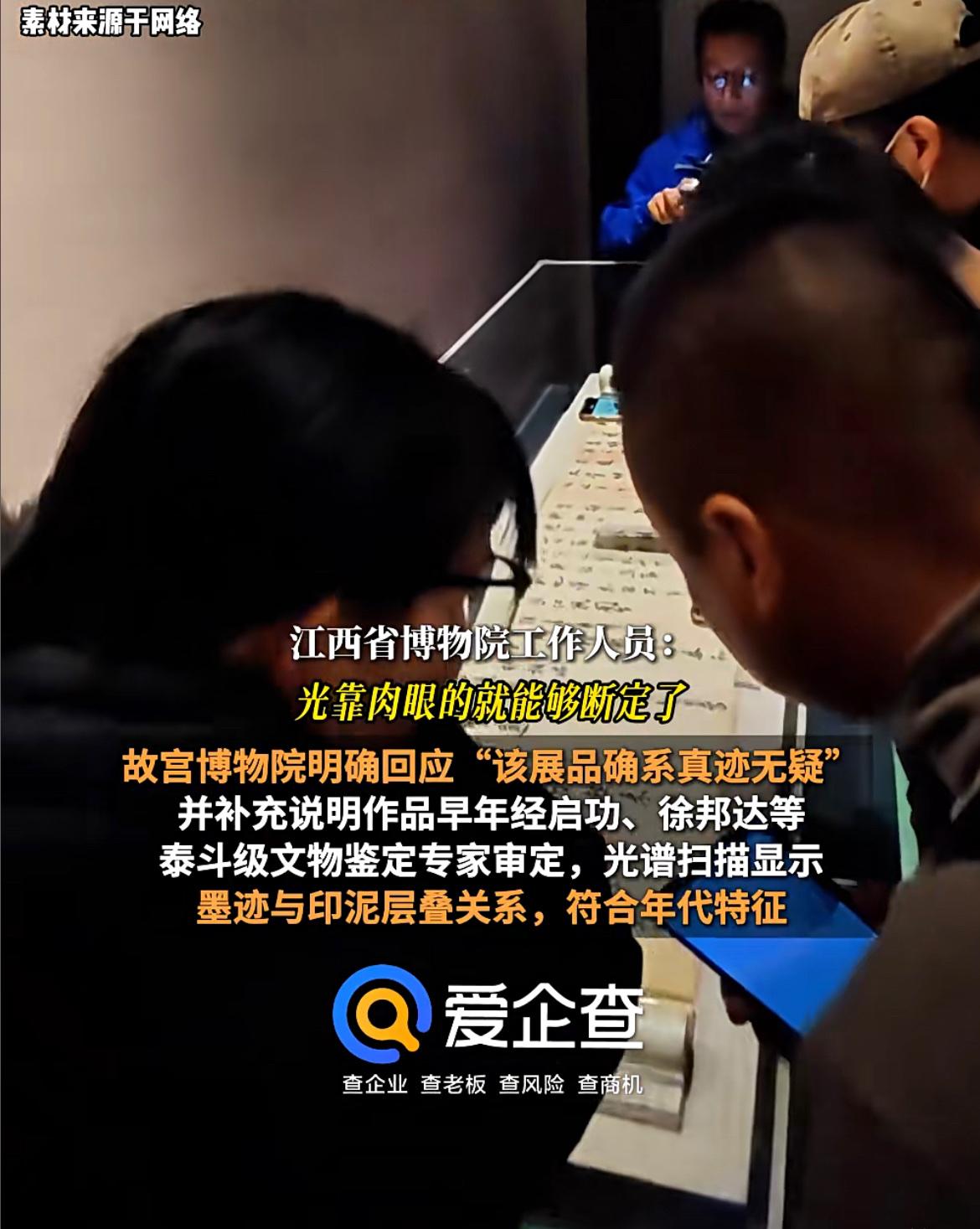 江西省博物馆从故宫借的米芾《行书三札卷》,被前中国书法协会会员质疑为“印刷品”,毫无墨色变化,字在印章上面。 江西省博物馆回应:该展品是原件。 这个大家怎么看呢? 文物 江西省博物馆