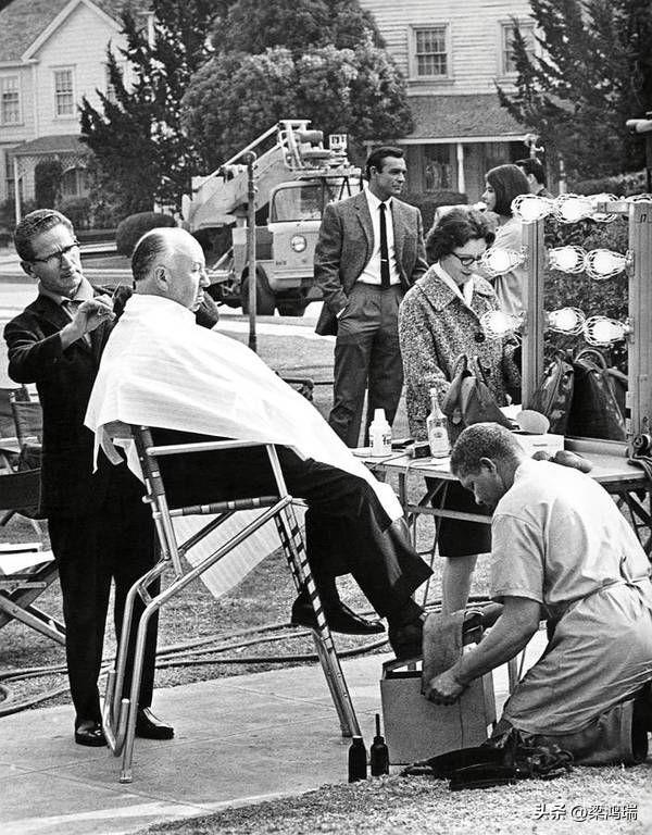 阿尔弗雷德·希区柯克在拍摄电影《艳贼》的间隙,去理发和擦鞋。 阿尔弗雷德·希区柯克(Alfred Hitchcock,1899年—1980年)是著名的英国电影导演及制片人,被誉为“悬念大师”。 《艳贼》(Marnie,港台译《神秘贼美人》)是一部1964年上映的美国心理惊悚片,由著名导演阿尔弗雷德·希区柯克(Alfred Hitchcock)执导。这部电影改编自温斯顿·格雷厄姆(Winston Graham)1961年的同名小说。