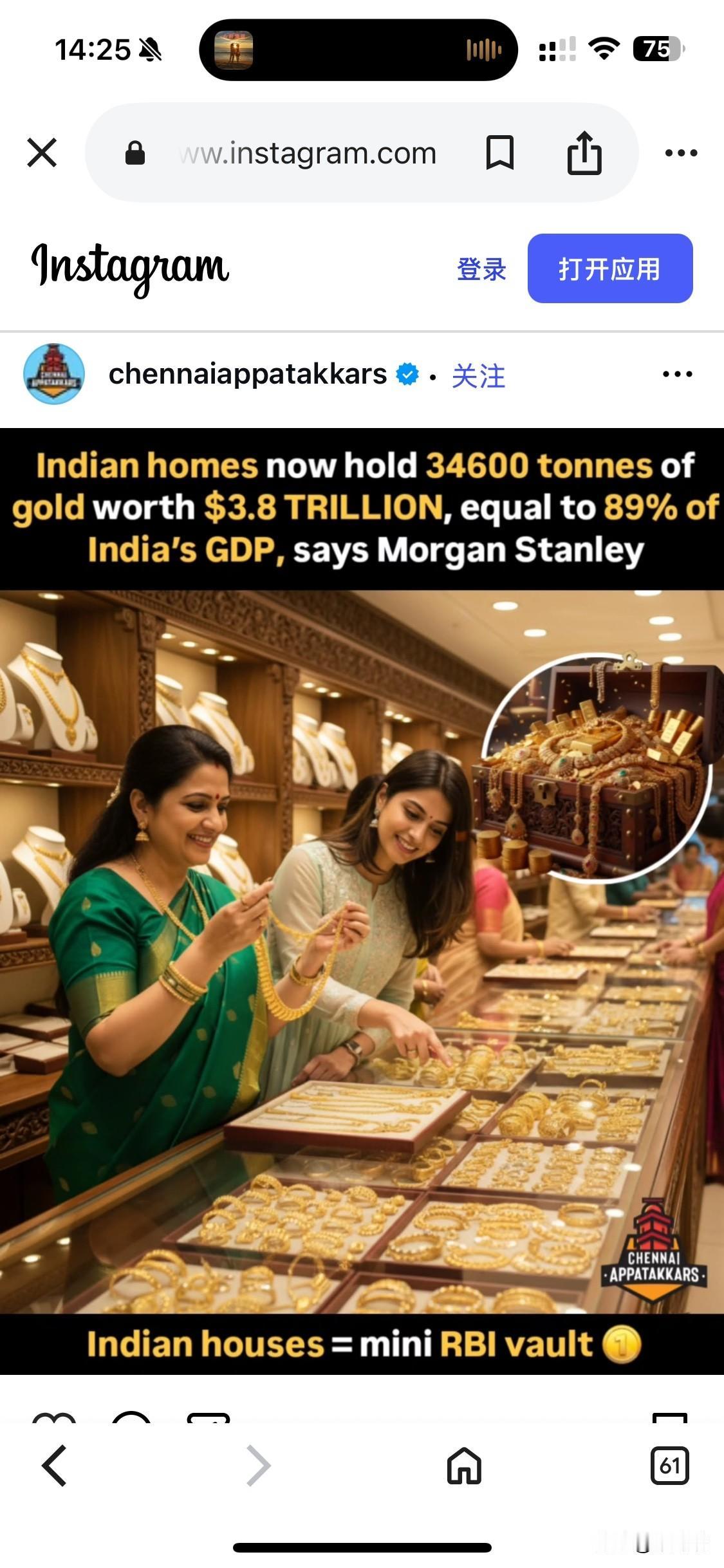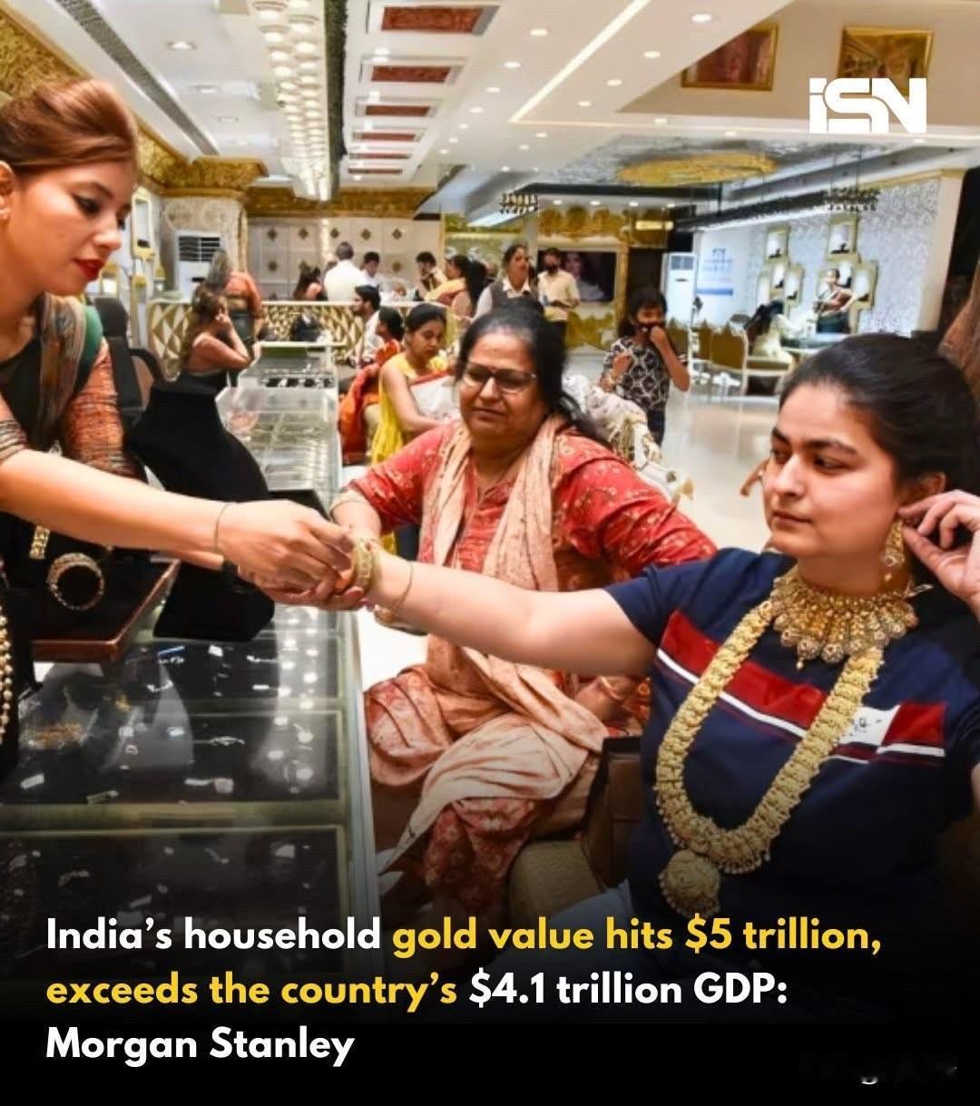 印度家庭持有的黄金价值估计已超过5万亿美元,这超过了印度约4.1万亿美元的国内生产总值(GDP)。 根据摩根士丹利(Morgan Stanley)的报告,印度家庭拥有约34,600吨黄金。按照近期每盎司超过4,500美元的国际金价峰值计算,这些黄金价值超过5万亿美元。 黄金在印度文化中具有深厚的根基,被视为一种重要的家庭储蓄形式、婚礼传统和财务安全网。大部分家庭黄金以珠宝形式存在,具有情感价值,而非可随时变现的投资资产。 印度是全球第二大黄金消费国。黄金价值的激增正值金价创下历史新高,这提升了家庭的账面财富。 GDP对比: 国际货币基金组织(IMF)的数据显示,印度2025年的名义GDP约为4.1万亿美元,印度政府最近宣布印度已超过日本成为世界第四大经济体。家庭黄金持有量超过国家GDP,凸显了印度经济中独特的财富储存方式。 印度家庭的黄金储备相当于一个“影子金融体系”,为家庭提供流动性,但也影响国家的经常账户赤字和货币政策。