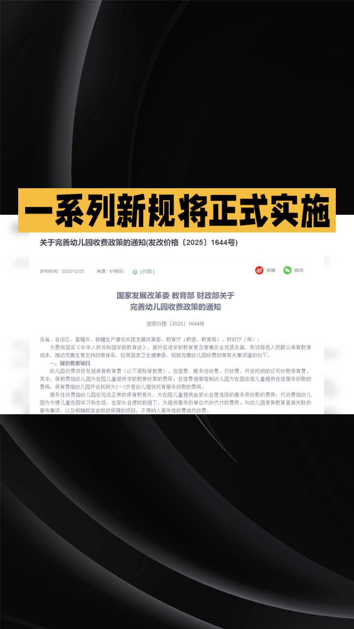 2026年1月1日起,一系列新规将正式实施.,从打击考试作弊到规范幼儿园收费,全面升级社会治理和民生权益保障。 2026年1月1日起,多项新规将正式施行,标志着我国法治建设进入新阶段。其中,新修订的《治安管理处罚法》将考试作弊、无人机“黑飞”等行为纳入管理范围,加大处罚力度,维护社会秩序。同时,《关于完善幼儿园收费政策的通知》明确了幼儿园收费项目,促进学前教育收费的透明与合理。此外,增值税法、国家通用语言文字法等也将在新的一年里生效,增值税法细化了纳税规定,国家通用语言文字法则加强了网络空间用语规范。这些新规不仅提升了社会治理效能,还进一步保障了公众权益,彰显了法治社会的进步。 国家新规解读 国家新规