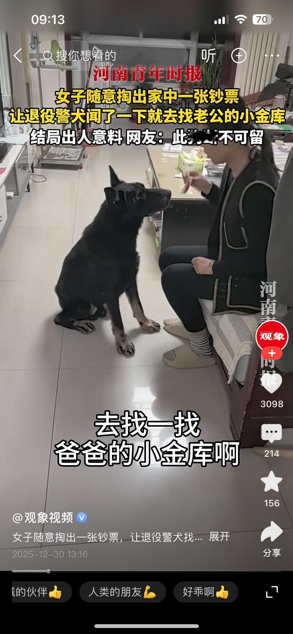 真是笑不活了,这个狗子找男人的小金库一发,估计好多男人的小金库要保不住了! 这用自己养的狗找自家男人的小金库,这一次好多养狗人家都发现了狗子的此项技能,估计自家男人的小金库都要不保了! 不过好在这是一条退役警犬,大部分的狗估计此项技能得训练! 看来这男人金库藏的严实,也怕有人“开挂找小金库”了!