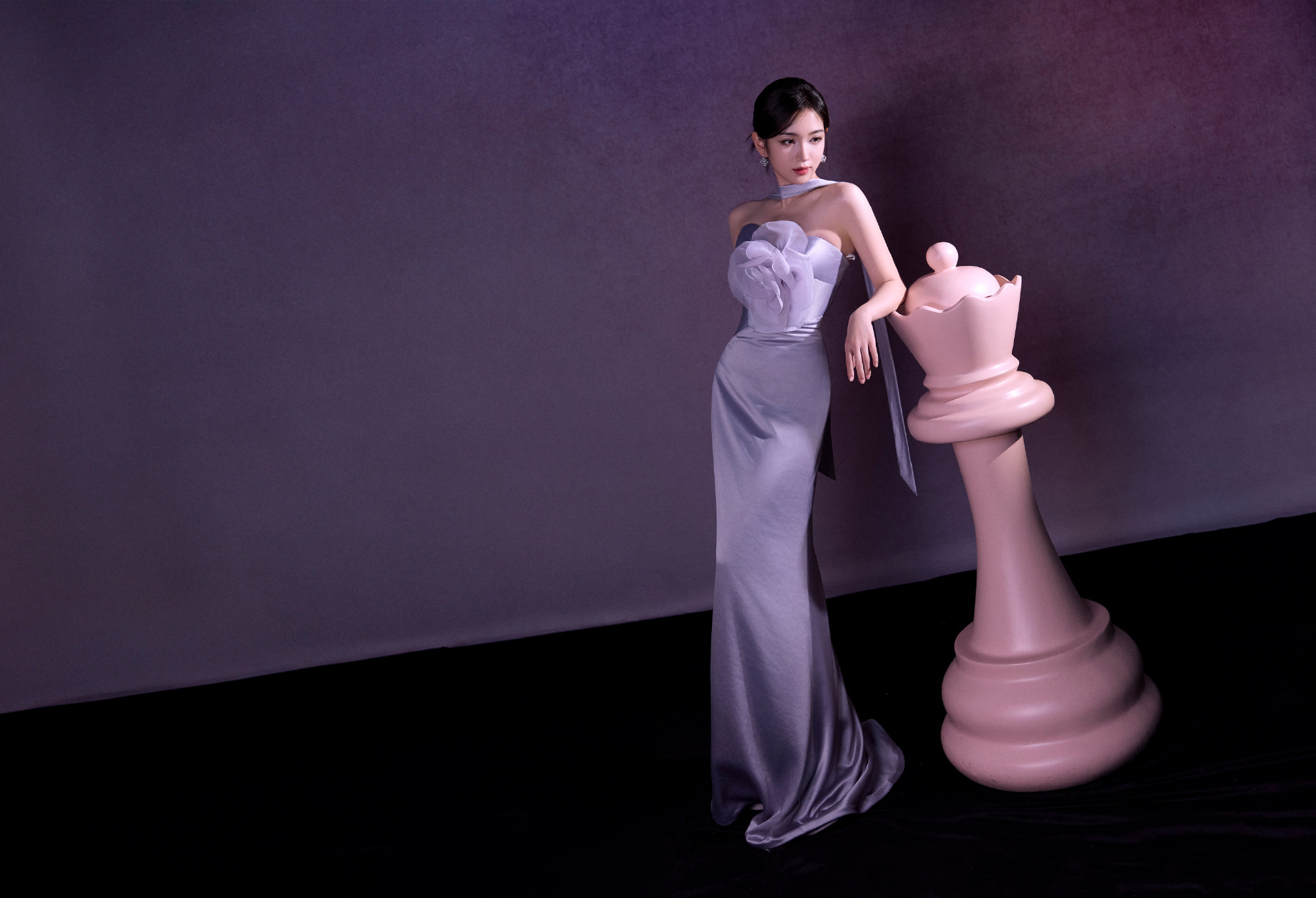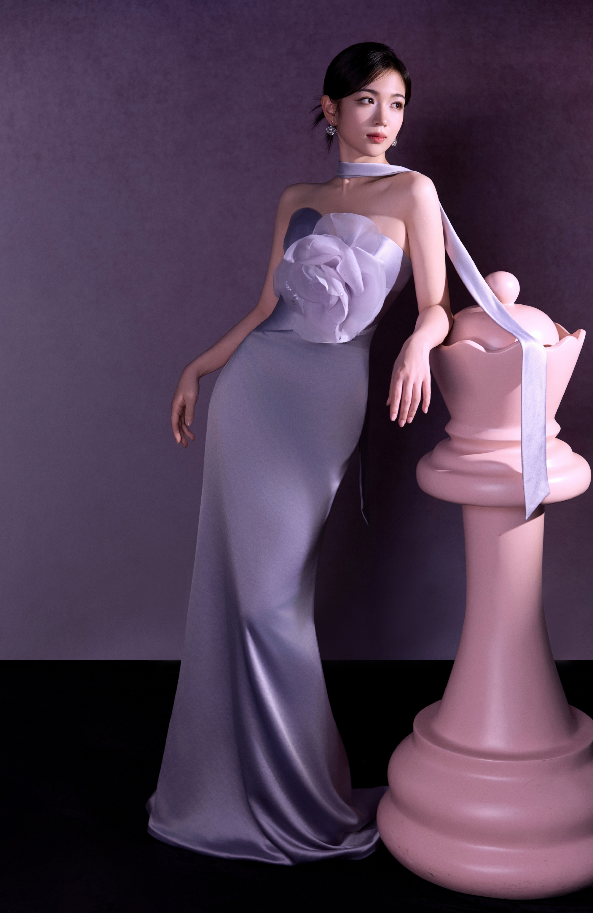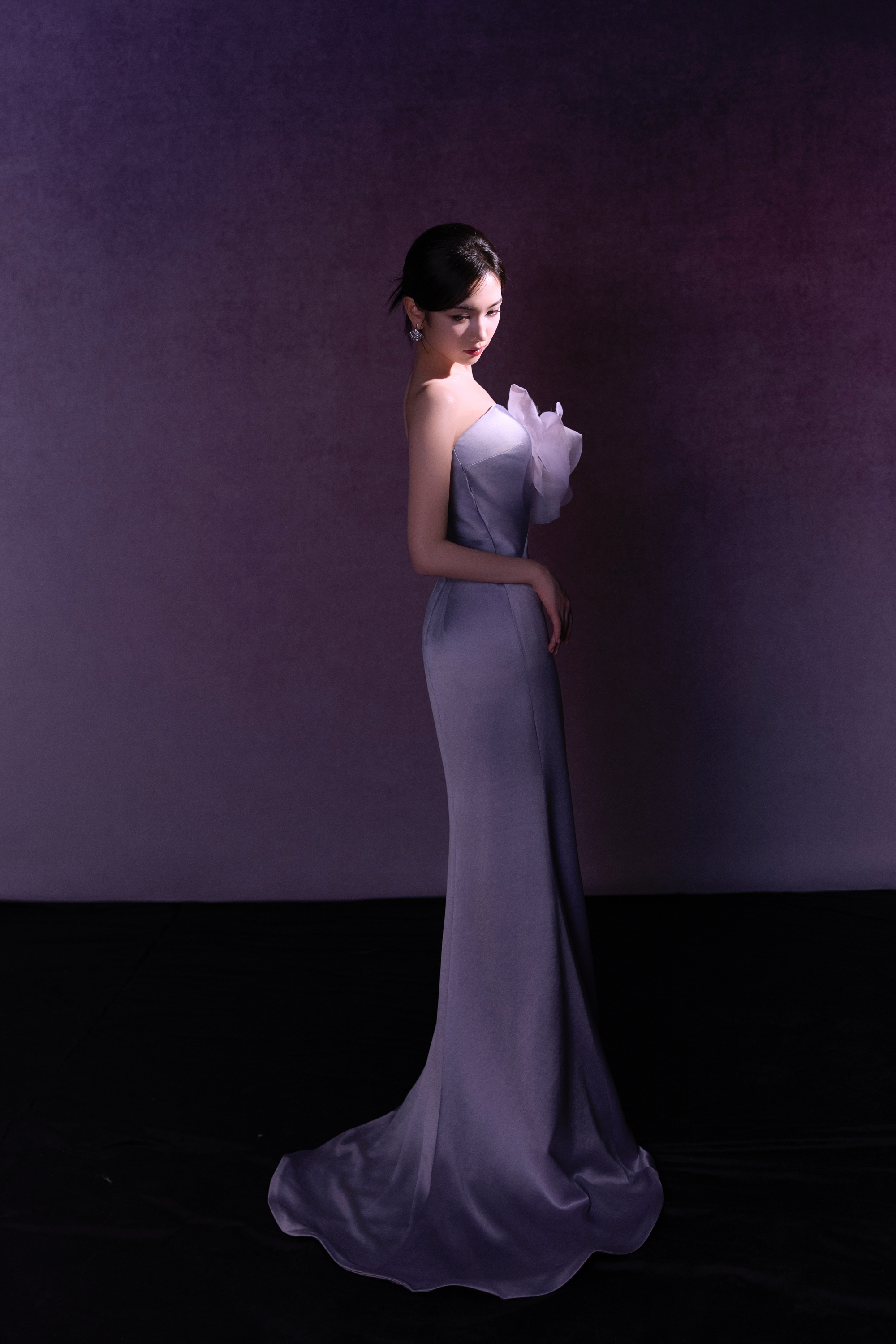 代露娃紫色鱼尾裙,优雅曼妙。代露娃