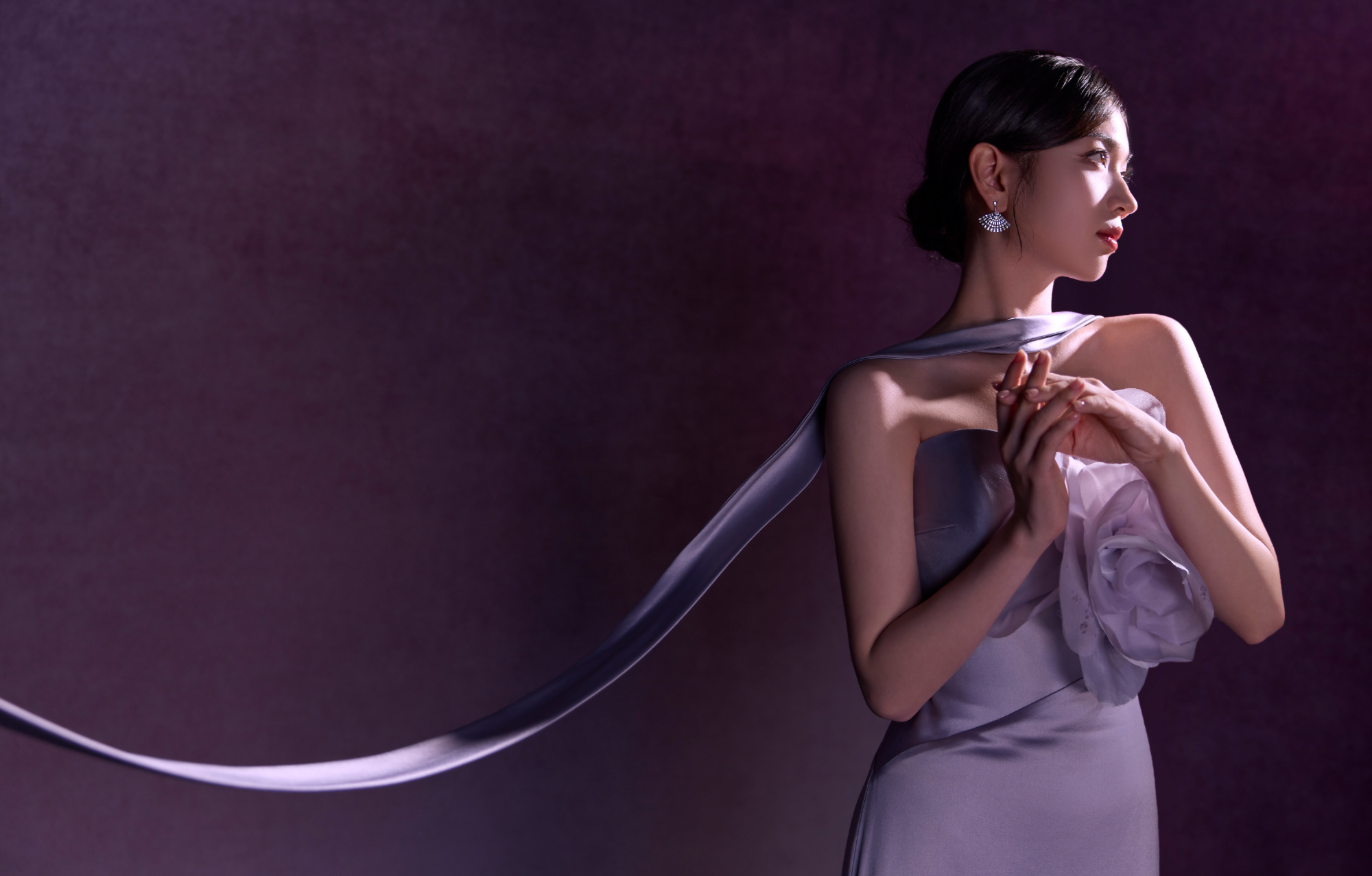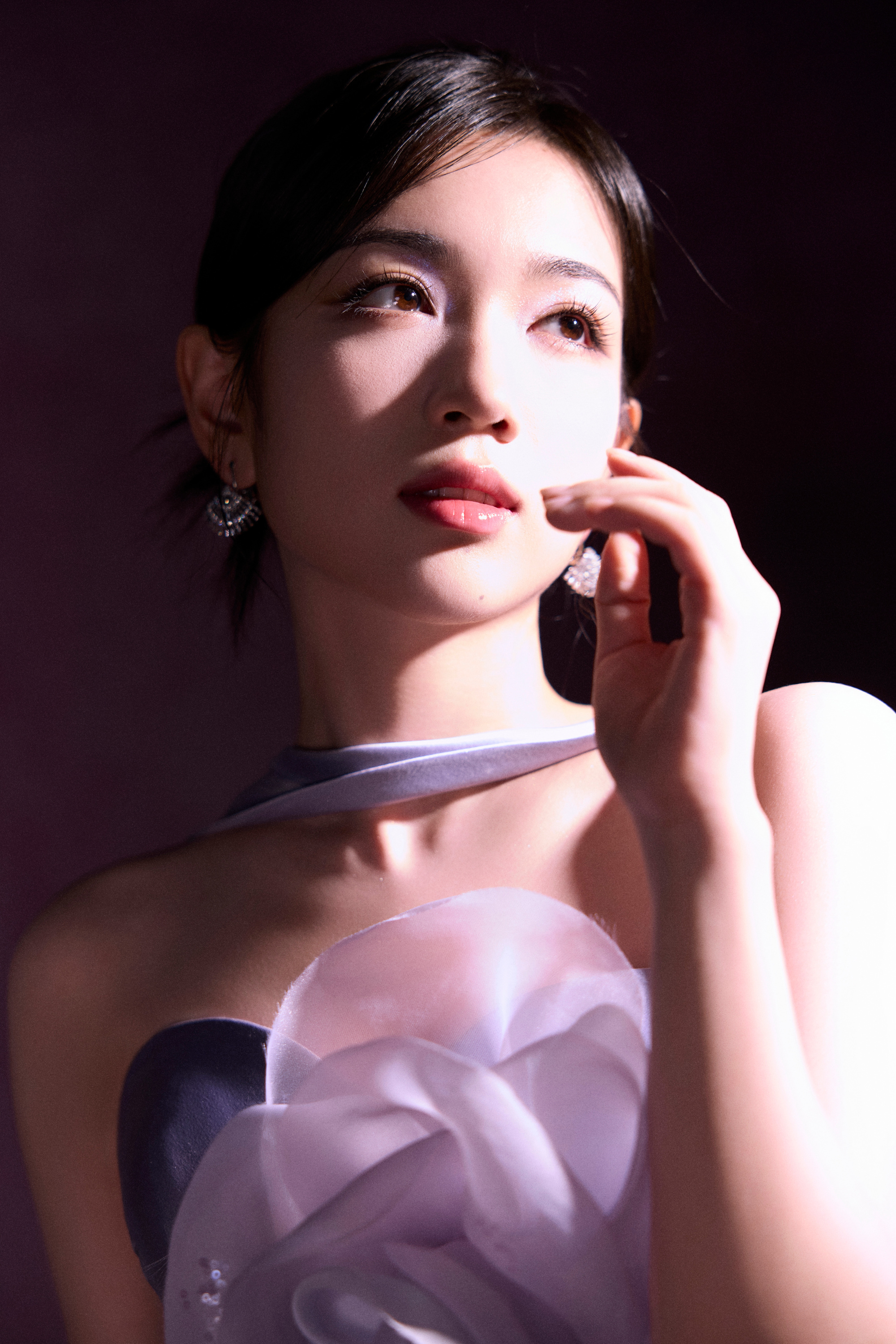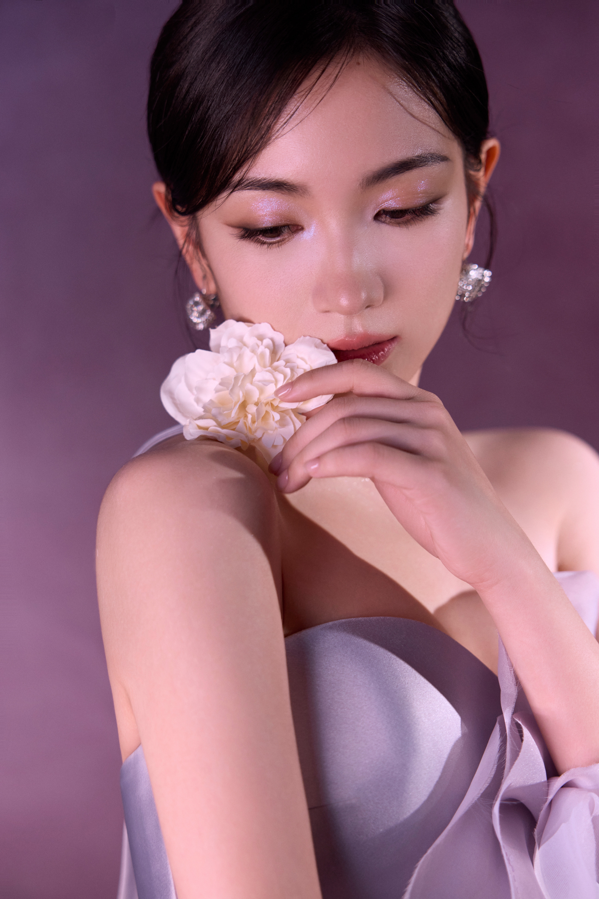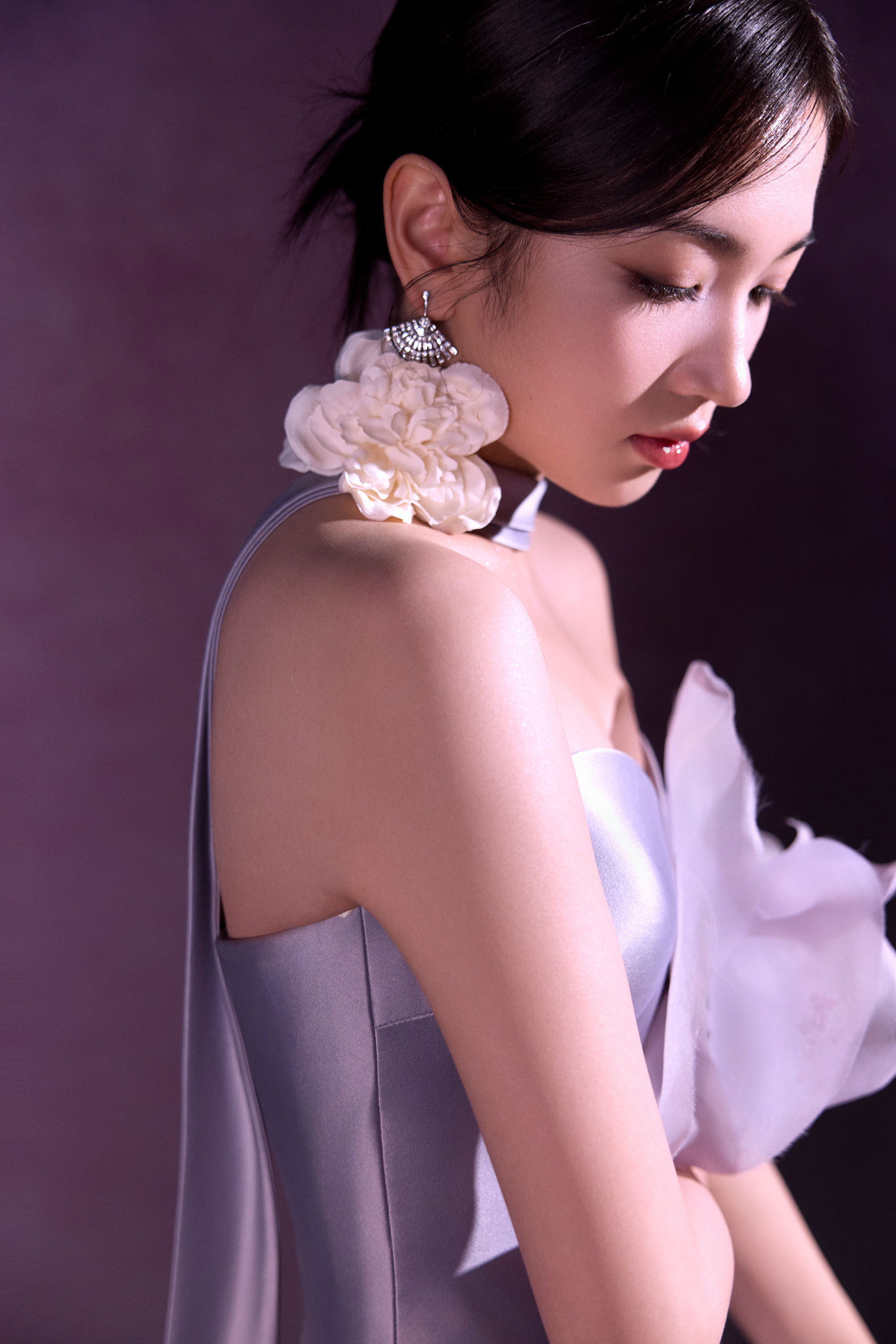 代露娃紫色鱼尾裙,优雅曼妙。代露娃