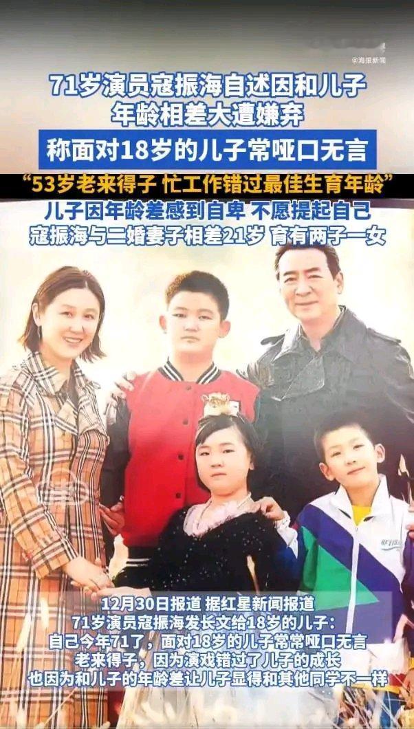 71岁的寇振海因为年龄差被18岁儿子嫌弃,这事儿还挺现实。想想也是,18岁正青春年少爱面子,有个71岁的老爸,可能在朋友面前会觉得有点“特殊”。就像有些同学,父母年轻时尚,孩子就愿意多显摆显摆。寇振海儿子不愿提他,估计也是怕被人说三道四。不过,年龄差距大也不影响亲情呀。寇振海肯定也给了儿子很多关爱。等儿子再长大些,经历多了,就会明白父亲的爱无关年龄,或许就不会再嫌弃啦。