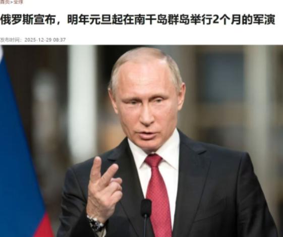 俄罗斯正式宣布, 12月29日,俄罗斯宣布将于明年(2026年)元旦起,在日本与俄罗斯的争议区的日本北方四岛举行为期约2个月的军事演习。 这四个岛分别是齿舞、色丹、国后、择捉,二战之前属于日本,二战结束后就由苏联实际控制,后来苏联解体,就由俄罗斯继承了控制权。 这么多年来,日本一直没放弃要回这几个岛的想法,还把每年 2 月 7 日定为 “北方领土日”,但俄罗斯始终认定这是自己的核心领土,根本没商量的余地,这也是日俄至今没能签订和平条约的关键原因。 这次俄罗斯要搞的军演,包含连续多日的实弹射击课目,覆盖的范围包括国后岛、择捉岛,还有 2025 年 10 月俄罗斯刚正式命名的两座无人岛。 更值得关注的是,这次军演的时间点特别有针对性。就在俄罗斯官宣的三天前,日本自民党参议员铃木宗男刚带着政府的诉求访问了莫斯科。 这个铃木宗男是日本政坛出了名的熟悉涉俄事务的人,出发前还专门见了首相高市早苗,核心是想跟俄方谈两件事:一是让俄罗斯恢复日本民众去南千岛群岛扫墓的权利,二是重启日俄之间的通航。 可没想到,会谈刚结束没两天,俄罗斯就直接抛出了军演计划,相当于给了日本一个明确的回应。 俄罗斯外交部后来发的声明里说,想让双方恢复交流,前提是日本放弃敌视俄罗斯的政策,而且俄方对日本不断增加军费开支的做法很担忧。 毕竟日本政府刚批准了 2026 财年的预算案,里面的防卫费直接突破了 9 万亿日元,创下了历史新高,这已经是日本防卫费连续 14 年增长了。 这笔军费比日本年度教育预算的 2 倍还多,重点要花在远程打击武器、无人作战体系和西南诸岛的军事部署上,甚至还计划研发长射程导弹和攻击型无人机的海岸防御体系。 除此之外,日本执政联盟还达成了一致,要修改 “防卫装备转移三原则”,取消对 5 种类型武器出口的限制,以后杀伤性装备都可能对外出售。 更让人关注的是,高市早苗在 12 月 23 日接受采访时,还公然说 “不排除未来引进核潜艇”,自民党和维新会的联合执政文件也明确为研发、生产核动力潜艇开了绿灯。 俄罗斯选择在这个时候搞军演,本质上就是对日本这种 “一边制裁一边要好处” 的做法的直接反制。2022 年 2 月俄乌冲突爆发后,日本跟着西方一起对俄罗斯实施了制裁,俄罗斯当时就采取了反制措施,暂停了对前来参访尤其是祭扫的日本人发放登岛许可。 现在日本一边想通过特使访俄要回一些民生方面的便利,一边又在疯狂扩充军备、走军事化路线,俄罗斯自然不会买账。用军演这种方式表态,就是要明确告诉日本,想在领土问题和军事扩张上打主意,是行不通的。 从战略角度来说,南千岛群岛对俄罗斯也有着重要的意义。这片岛屿扼守着鄂霍次克海通往太平洋的重要水道,是俄罗斯太平洋舰队核潜艇的重要活动区域。俄罗斯在岛上已经部署了 S-400 防空系统,范围能覆盖整个日本北海道,就连日本的 F-35 战机刚起飞可能就会被监控到。 这次军演俄罗斯出动了 3700 名兵力、127 套海空装备,包括苏 - 35S 战机和伊斯坎德尔 M 导弹,演练的都是防空、反潜、登陆防御这些实战科目,说白了就是用实际行动宣告对这片区域的主权。 面对俄罗斯的军演计划,日本媒体报道说,政府已经在密切关注事态发展,会通过外交渠道就俄方在争议岛屿 “日益活跃的军事行动” 提出抗议。但从之前的情况来看,日本的抗议大概率不会有什么效果。 俄罗斯已经通过一系列动作强化了对南千岛群岛的实际管辖,从频繁的军事演训到暂停无害通过权,再到给无人岛命名,每一步都是在明确自己的控制权。 其实说到底,这次的军演就是日俄双方长期博弈的一个缩影。日本想在领土问题上施压,又不想放弃对俄制裁和军事扩张的路线;俄罗斯则用强硬的军事手段回应,维护自己的核心利益。 东北亚地区的稳定需要各国共同维护,日本不断提升军备、搞阵营对抗的做法,本身就会加剧地区的紧张局势。 俄罗斯的军演,也算是给日本划出了一条红线,要是继续在危险的道路上走下去,未来面临的反制可能会更加强硬。 但有一点很明确,二战后的国际秩序不容挑战,领土争议最终还是需要通过和平谈判来解决,靠军事施压或者军备竞赛,根本解决不了问题。