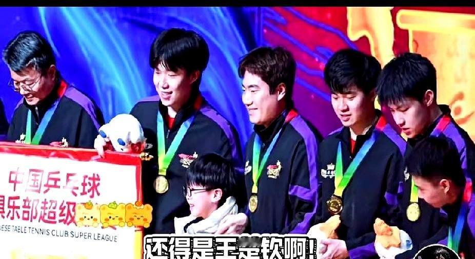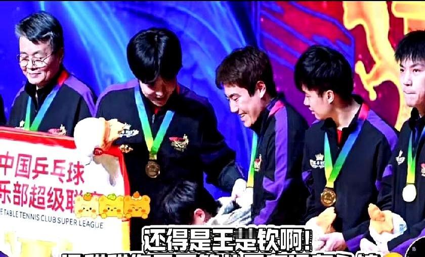 王楚钦这波操作,比他带伤夺冠还圈粉。 刚帮山东魏桥拿下乒超卫冕冠军,王楚钦自己其实还带着背伤。决赛一单3-1赢下向鹏,已经够顶了。可到了颁奖合影,他眼里全是队友梁靖崑的儿子小凉皮。 大横幅一拉,直接把个子小小的凉皮给挡没了,就剩个头顶。亲爹梁靖崑反倒是反倒是有点懵圈,王楚钦第一个发现,赶紧提醒,还上手和梁靖崑一起把娃举高高。 现场球迷都喊他温柔,网上更直接,“凉皮有两个爸,王楚钦比亲爹细心”。 他这心思真的,太细腻了。不光顾着孩子,领奖时还几次把C位让给队友。在这么高压的竞技场上,心里还装着这些小事,这格局没得说。 难怪赛后他说要歇一个月养伤,这么暖的大头,你粉了吗?
